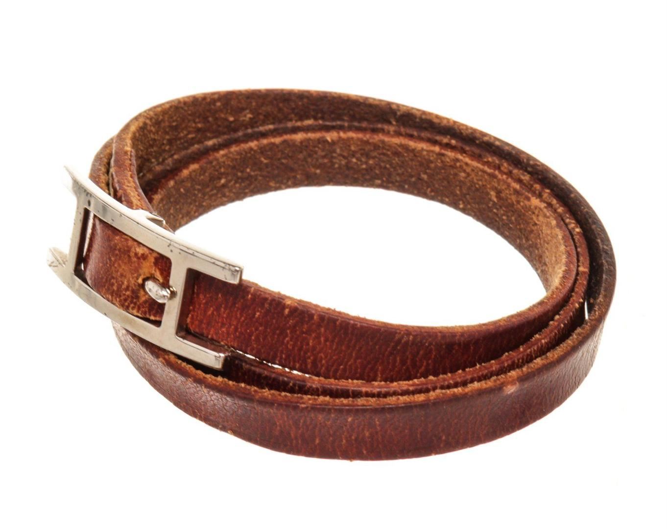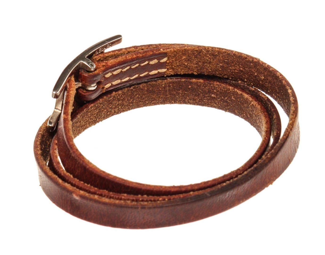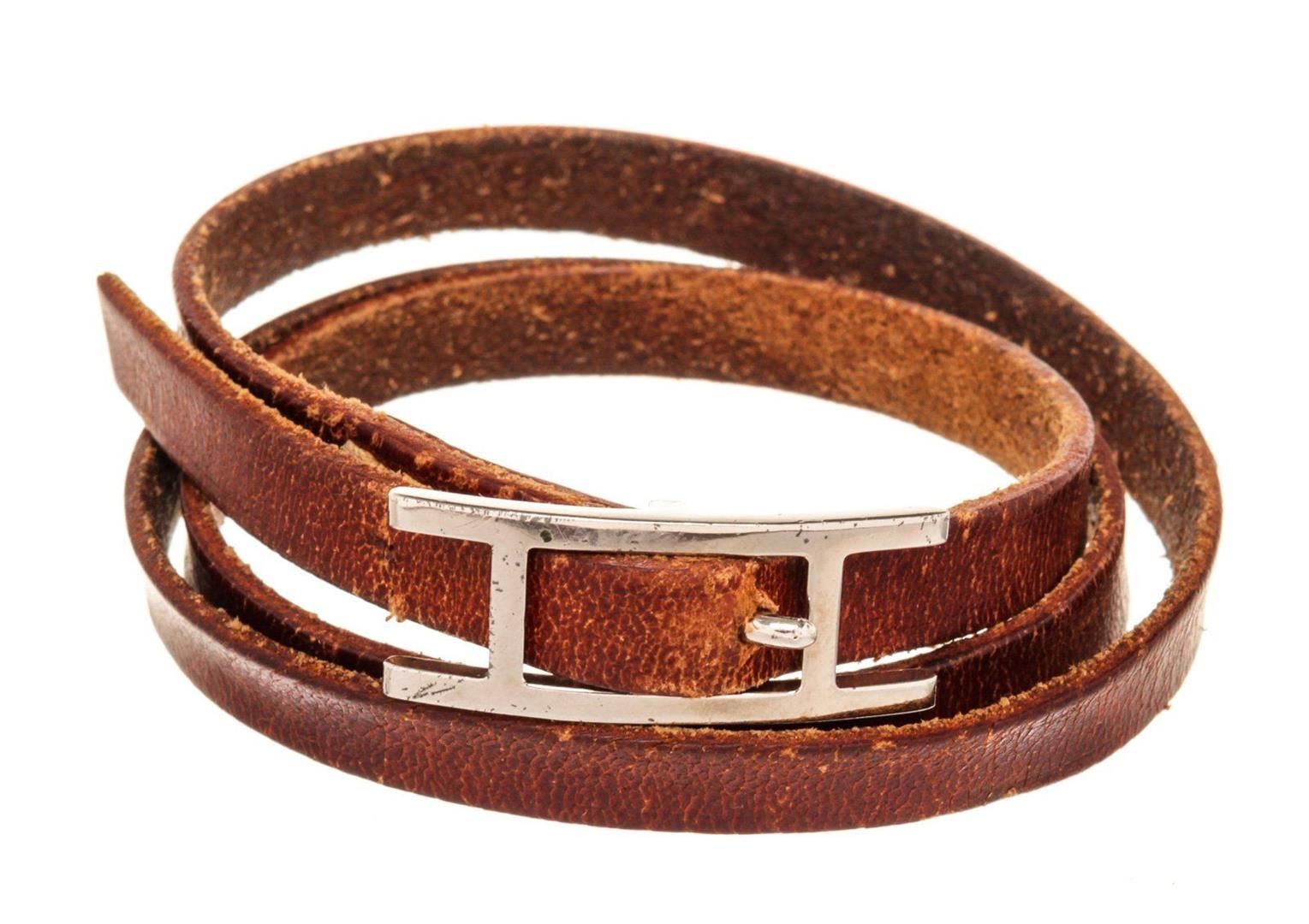 Hermes Brown Leather Choker Bracelet with leather, silver-tone hardware.