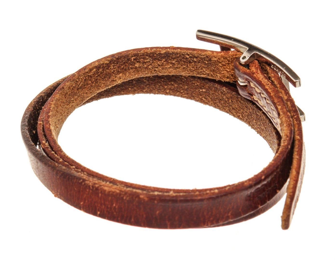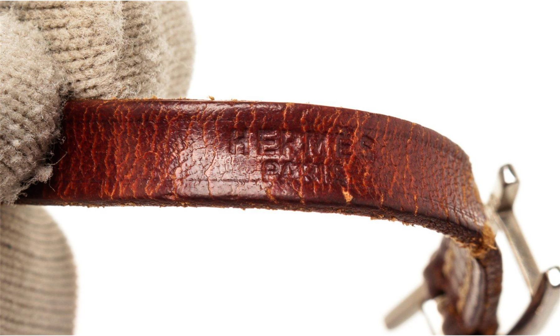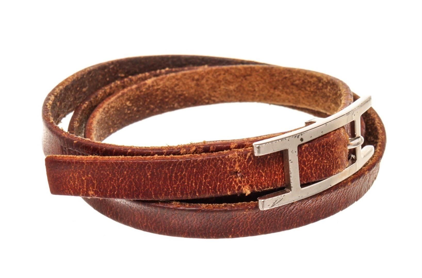 Hermes Brown Leather Choker Bracelet with leather, silver-tone hardware.