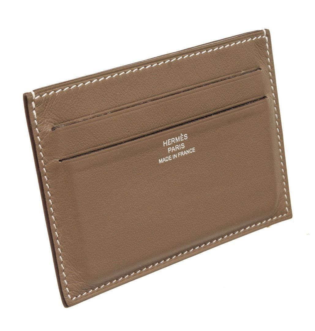 Hermes Brown Leather Citizen Cardholder Wallet with leather, gold-tone hardware, trim leather, interior slip pocket and flap closure.