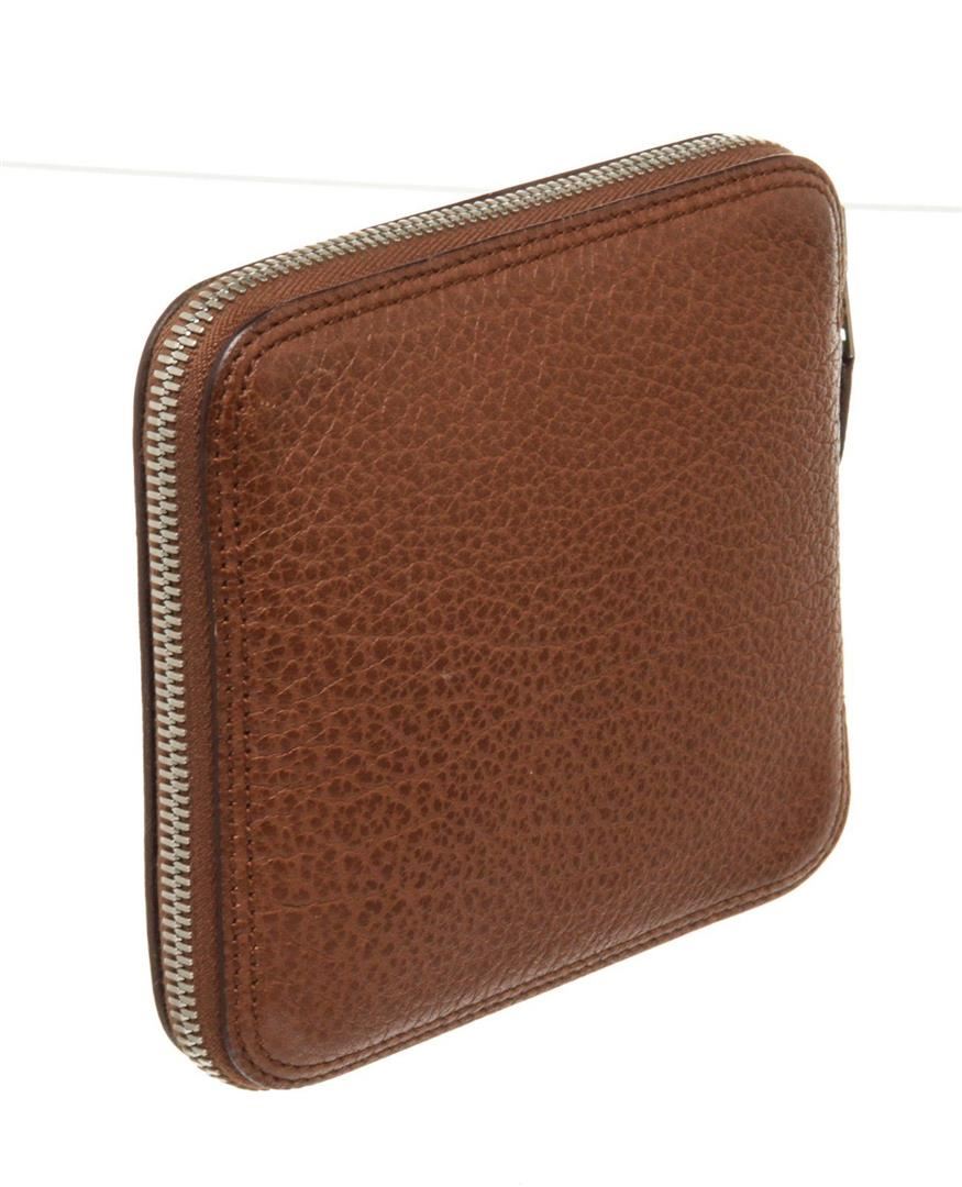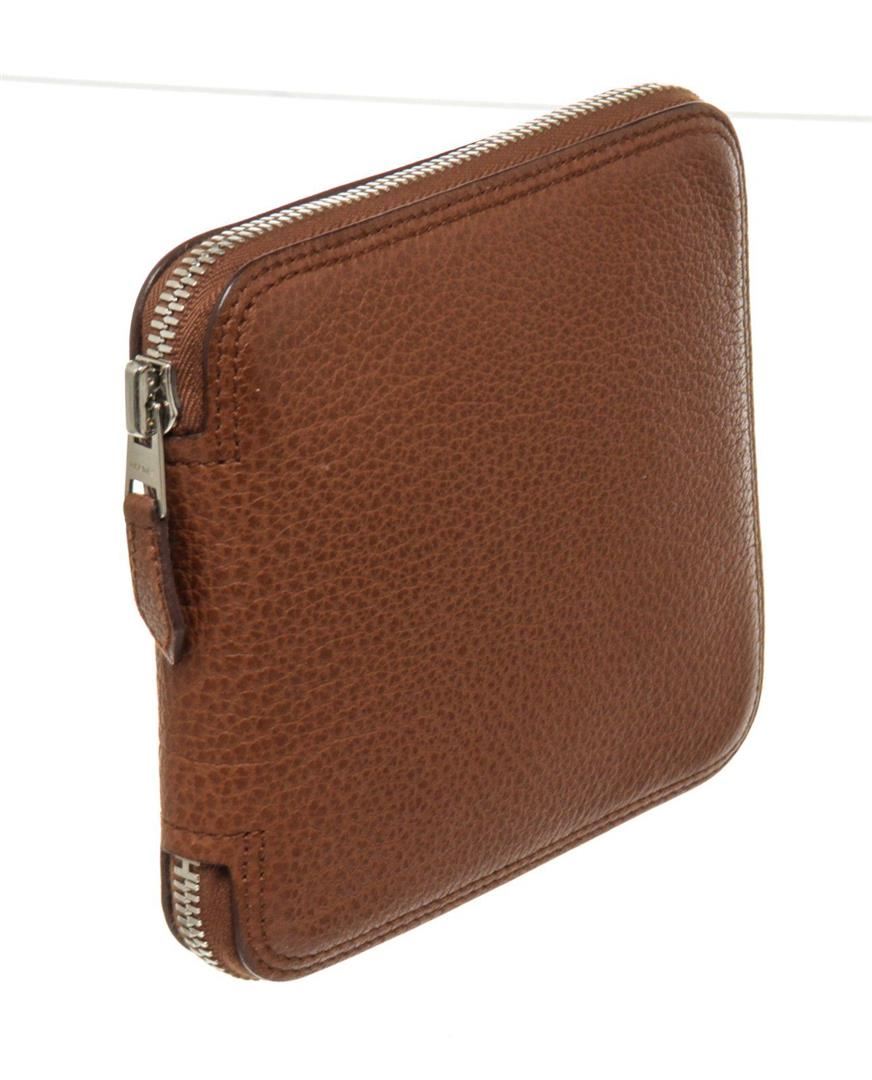 Hermes Brown Leather Folding Silky Wallet with leather gold-tone hardware, trim leather, interior zip pocket, shoulder strap and zipper closure.