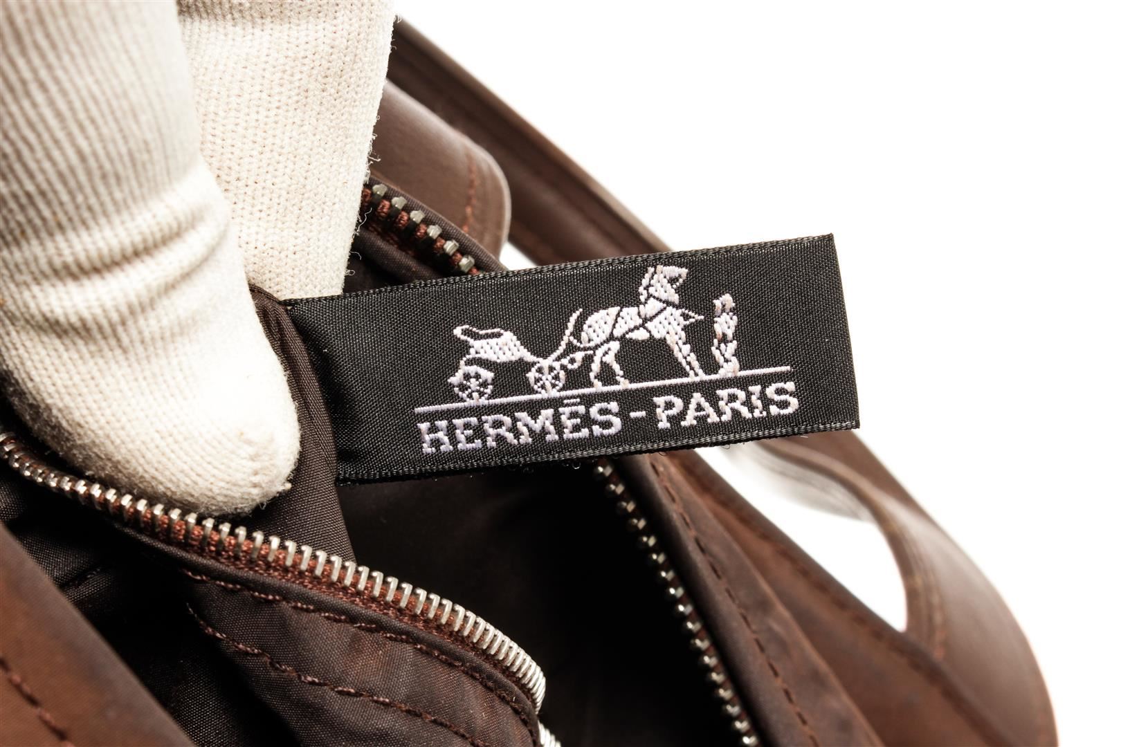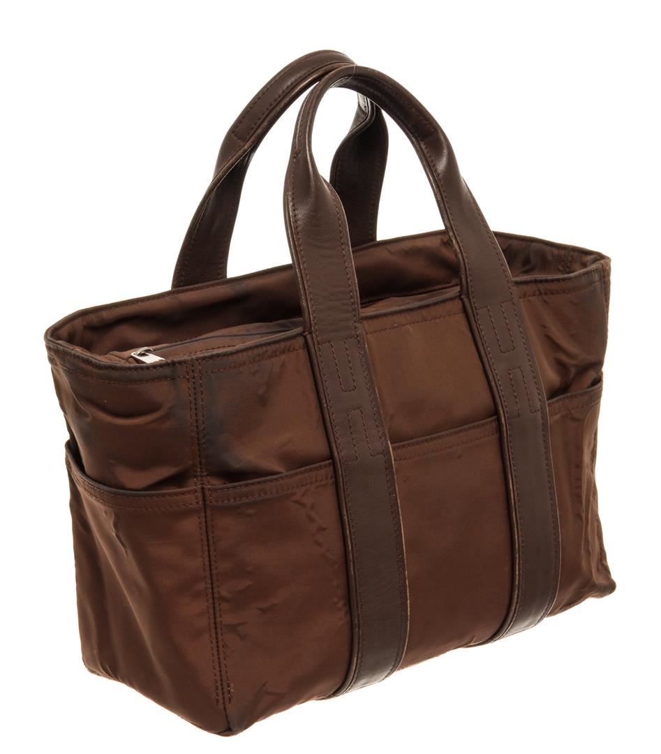 Hermes Brown Nylon and Leather Acapulco Tote Bag. All available information is listed in the description and shown in the photos. Hermes Brown Nylon and Leather Acapulco Tote Bag with silver-tone hardware, dual top straps, interior zip pocket, and zipper closure. VINTAGE. MATERIAL STICKY. DISCOLORATION.