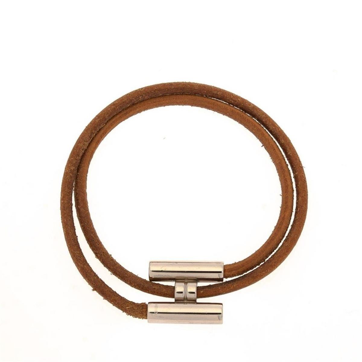 Hermes Brown Tournis 1 Wrap Bracelet with gold-tone hardware, 18k yellow gold-plated & brass, leather high polish, push clasp closure. Measurements: Length: 6.5 in / 17 cm Width: 11.25 in / 29 cm Condition: Pre-Owned Good overall, please see photographs for detail.