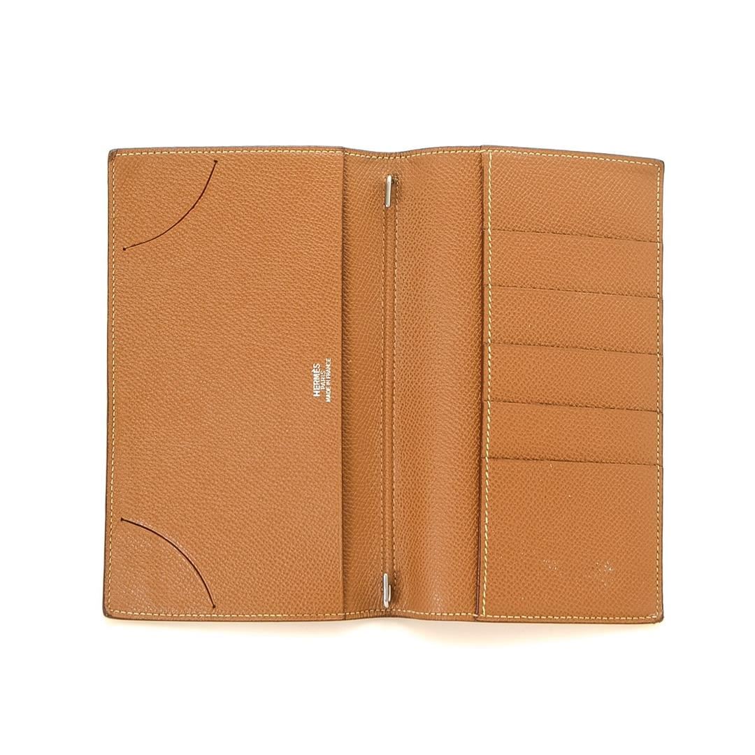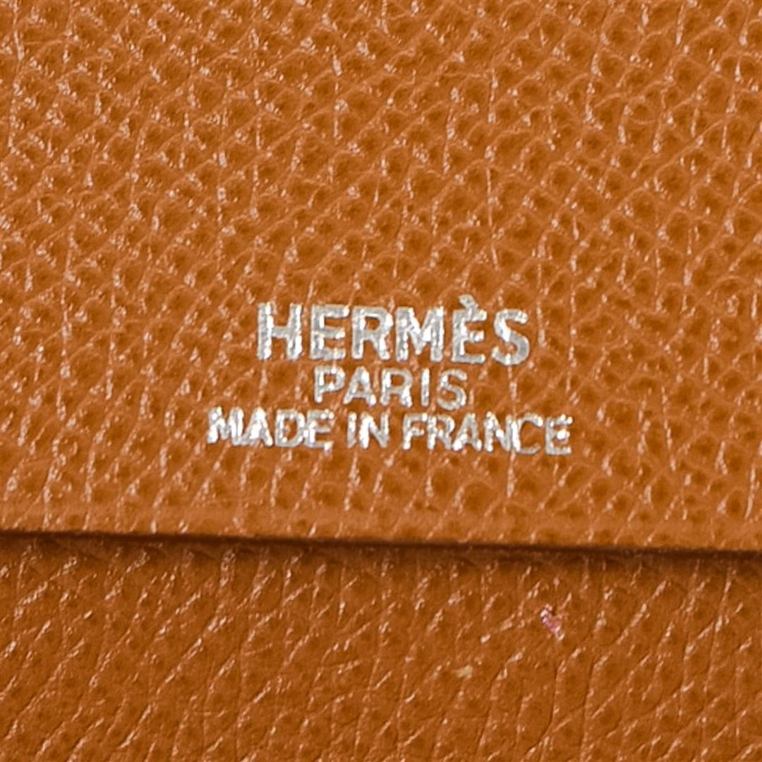 Hermes Camel Leather Flip Wallet. Please see photos and description for all available information! Hermes Camel Leather Flip Wallet with gold-tone hardware, brown leather trim, interior flap pockets, leather lining, bifold closure.