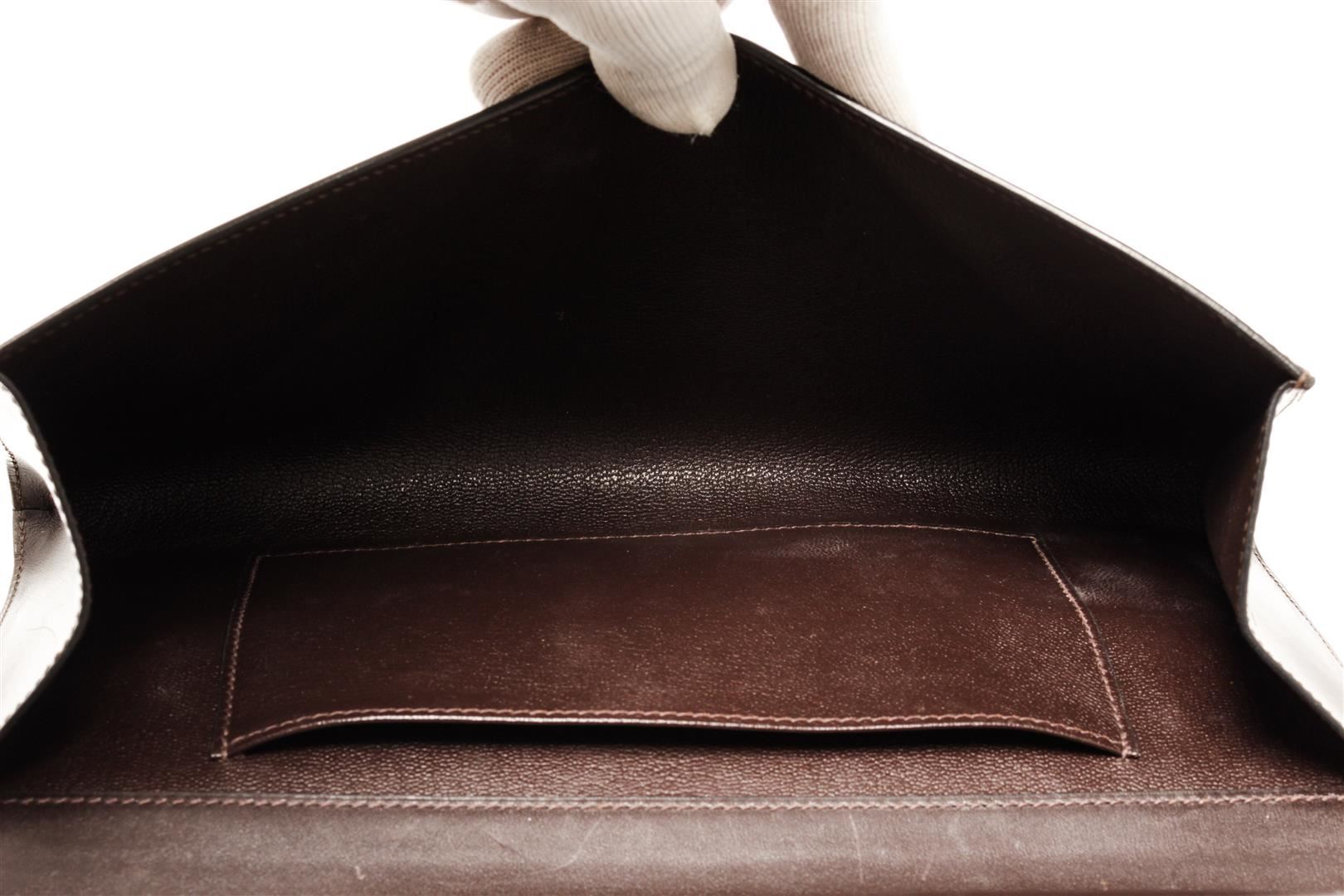One Hermes Chocolate Box Calfskin Medor 29. Item is sold AS-IS. All available information is listed in the description and shown in the photo. Hermes Chocolat Box Calfskin Medor 29. Features palladium plated hardware, brown leather interior with 1 pocket, and a clasp closure.