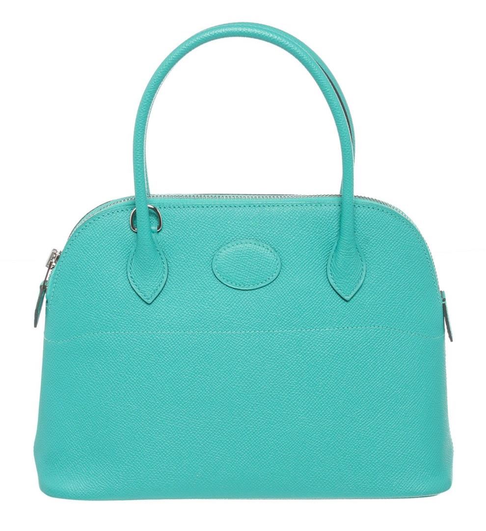 Hermes Blue Leather Bolide 27cm Shoulder Bag with leather, gold-tone hardware, trim leather, dual top handle and zipper closure.