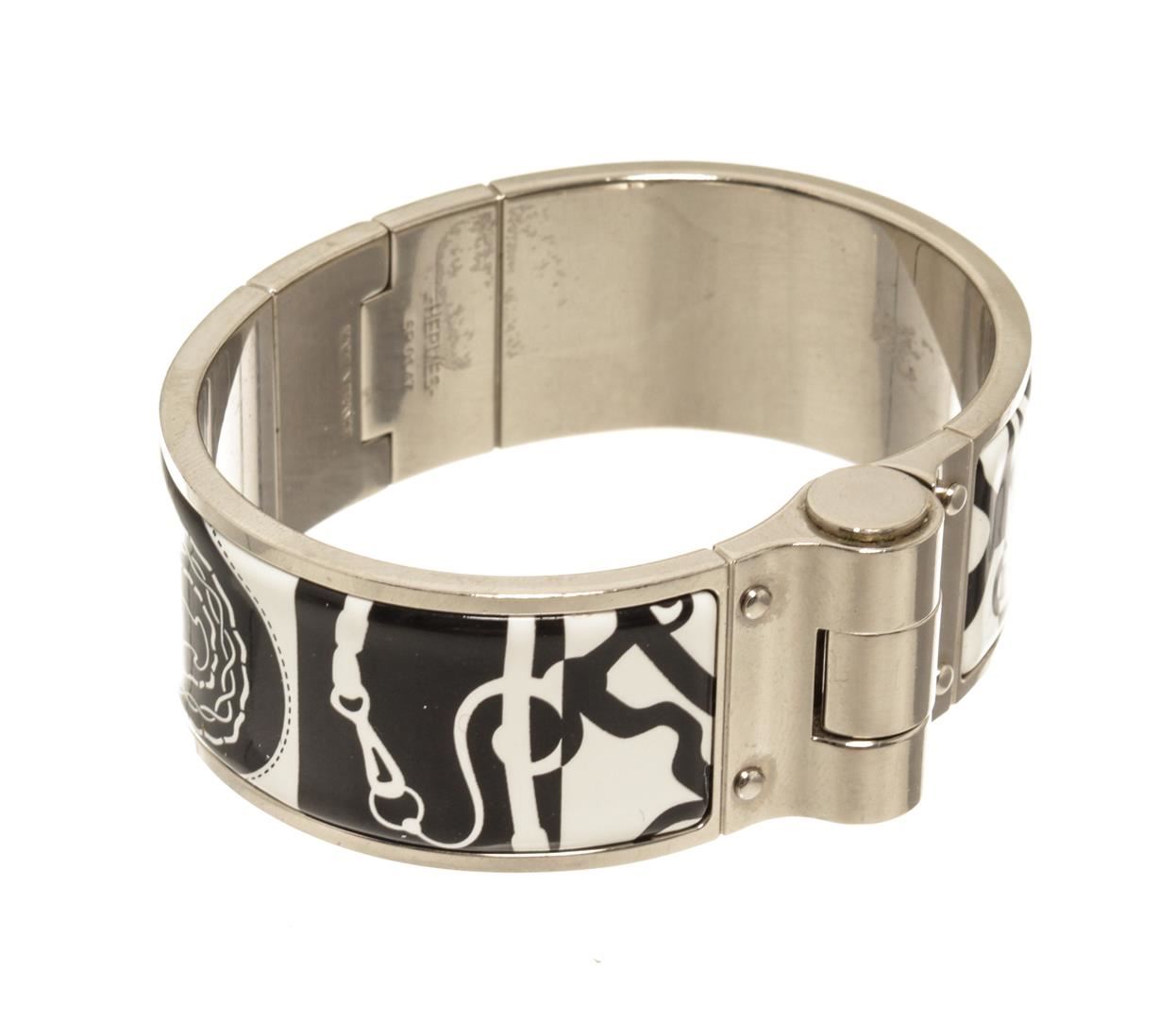 Hermes Enamel Wide Bangle. All available information is listed in the description and shown in the photos. Hermes Enamel Wide Bangle Wide Hermes bangle with enamel plated.