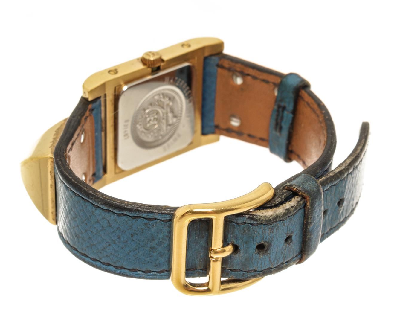 One Hermes Gold Plated Metal and Leather Medor Quartz 18mm Watch. Item is sold AS-IS. All available information is listed in the description and shown in the photo. Hermes Gold Plated Metal and Leather Medor Quartz 18mm Watch with band material leather, case material plated 18k yellow gold, movement quartz, Width: 23mm, Height: 16mm, Band Width: 18mm