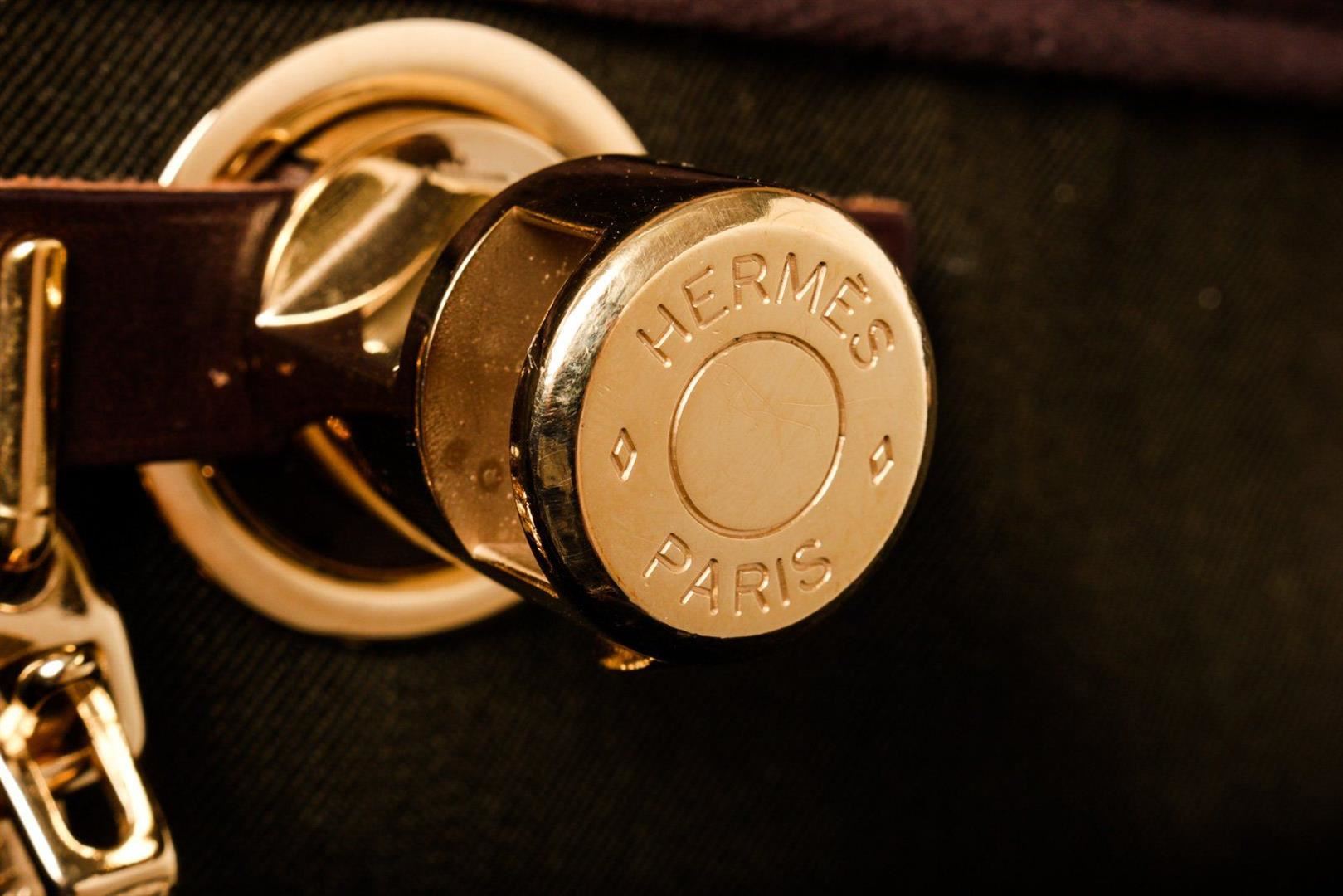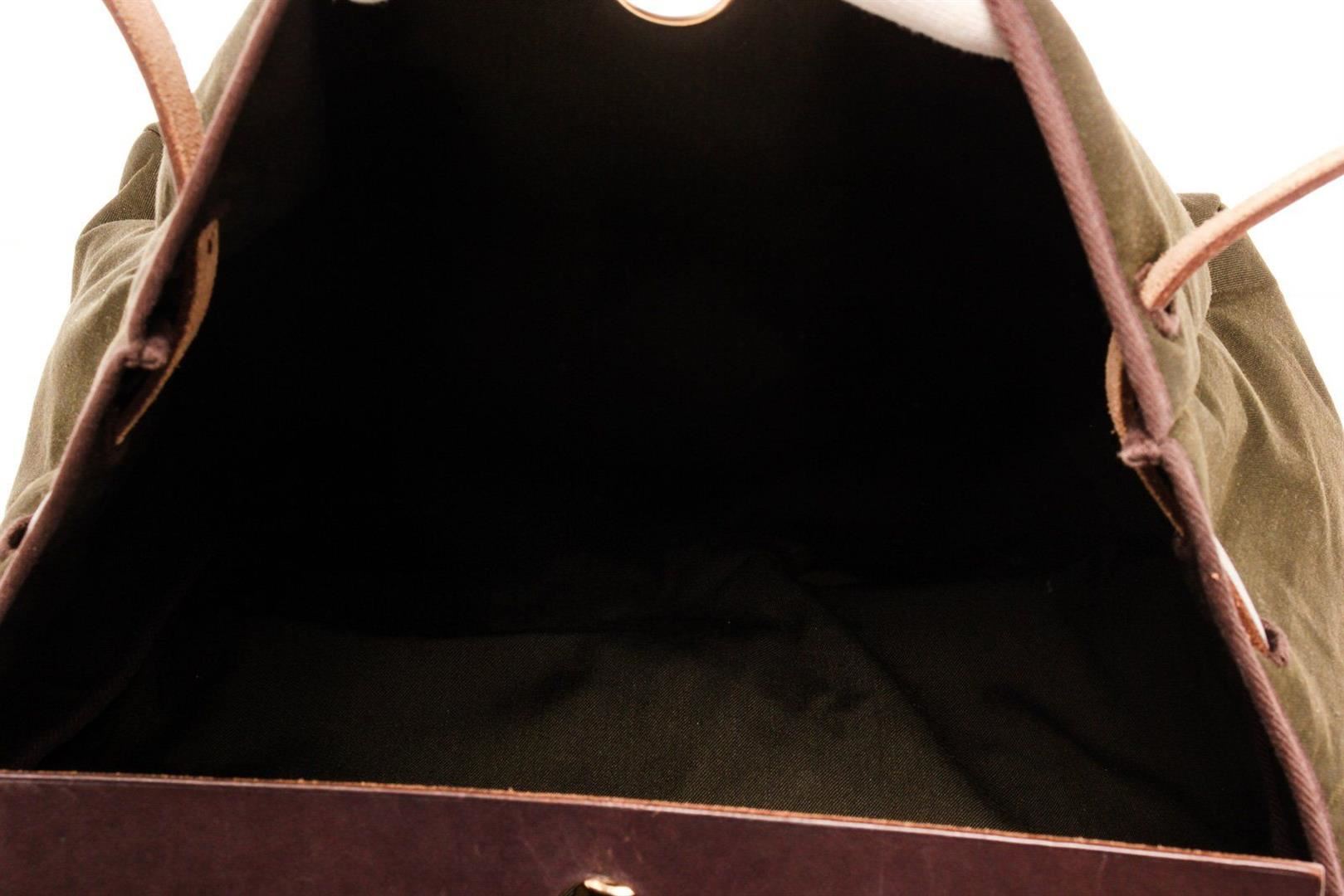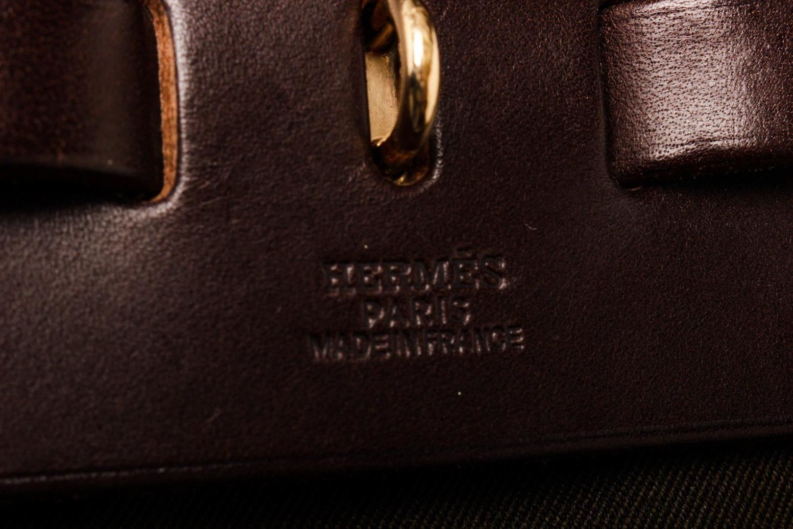 Hermes Green Canvas Herbeg GM Messenger Bag with palladium-plated hardware, tonal Vache Hunter leather trim, single layered top handle, single flat shoulder strap, tonal Toile interior and pull-through closure at front flap. Blind stamped C in Square.