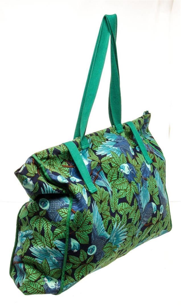 Hermes Green Large Cabas Shoulder Bag with cabas gold-tone hardware, shoulder strap and flap closure.