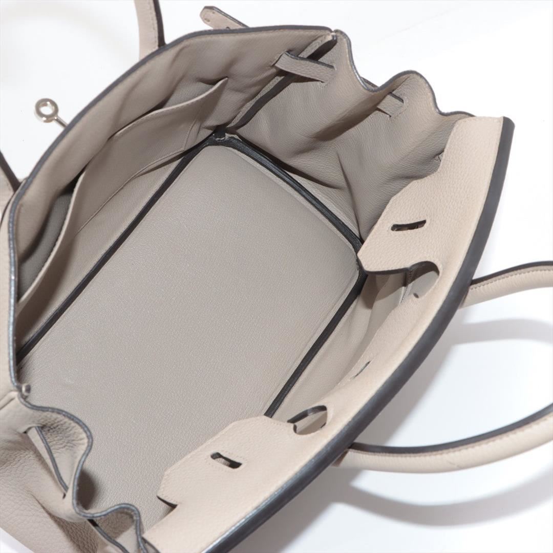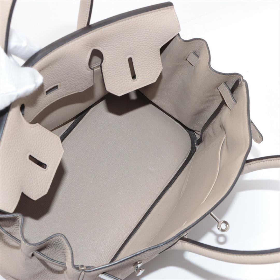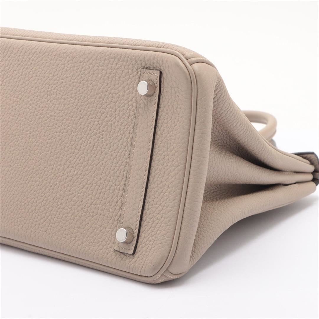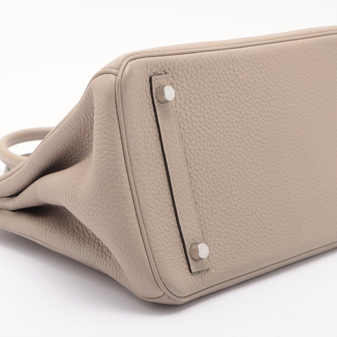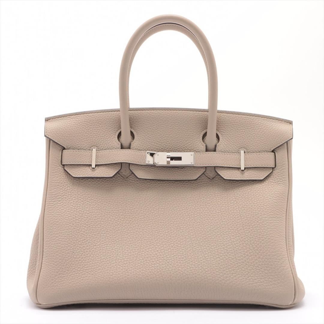 This Hermes Birkin 30cm handbag is crafted in Gris Tourterelle Togo leather with Palladium hardware and has tonal stitching, two straps with front toggle closure and double rolled handles. The interior is lined with Gris Tourterelle Chevre leather and has
