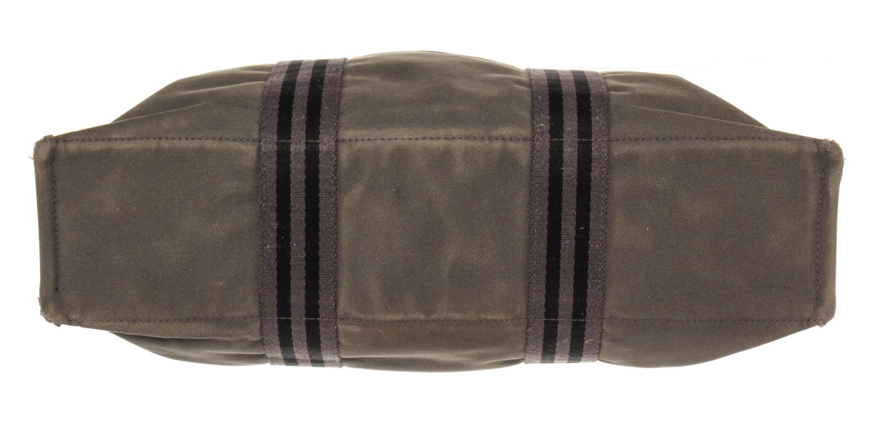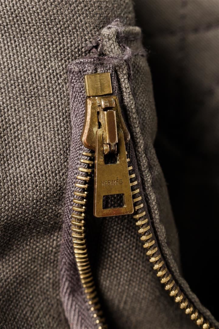 Hermes Herline GM. All available information is listed in the description and shown in the photos. Hermes Herline GM Grey Canvas. Features silver hardware, grey canvas straps, grey canvas interior, and a gold zipper closure.