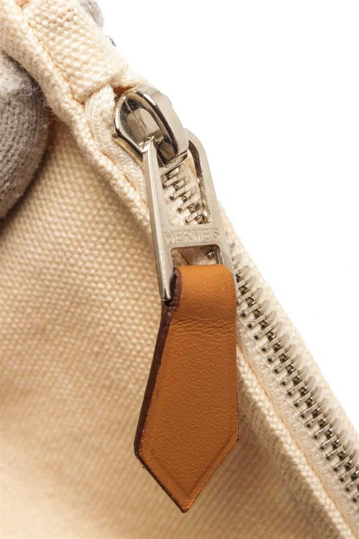 Hermes Ivory Canvas Panier De Plage Tote Bag. All available information is listed in the description and shown in the photos. Hermes Ivory Canvas Panier De Plage Tote Bag with gold-tone hardware, top is open to a ivory interior with a matching companion pouch.