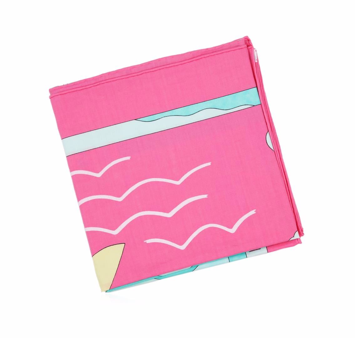 One Hermes cotton scarf in good condition, measuring 60cm by 60cm. The scarf features the 'Joie de Vivre' design by artist Joachim Metz. The design features various summer motifs in blue, pink, green and yellow hues with a pink border.