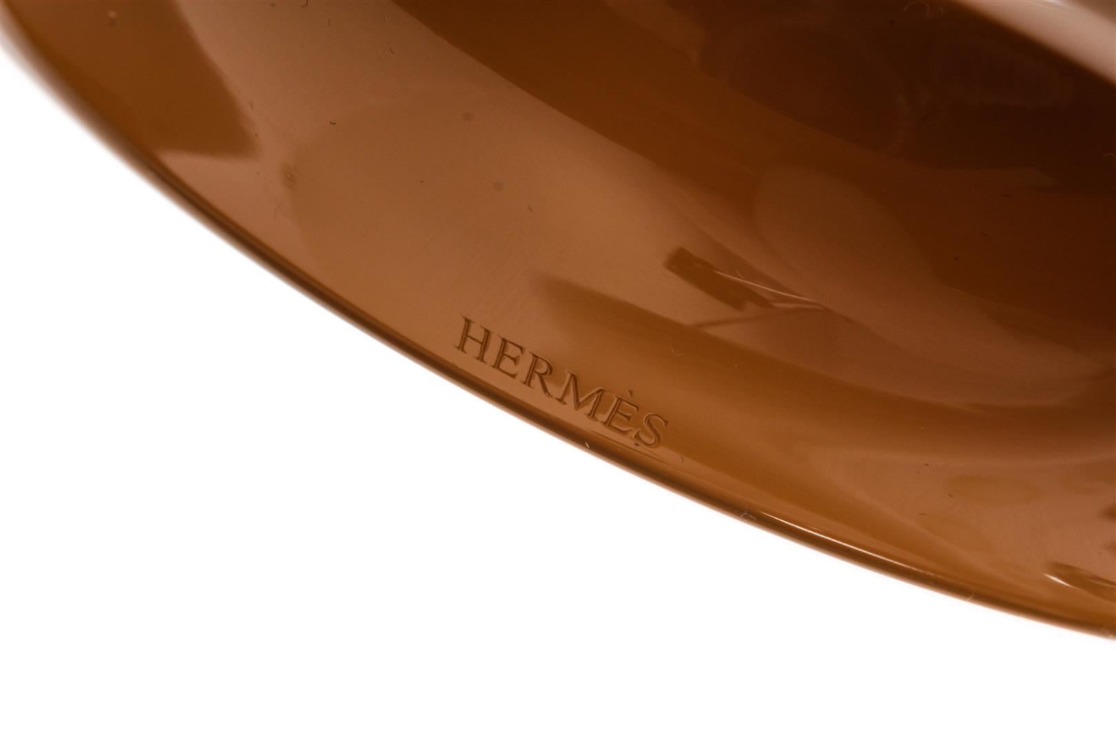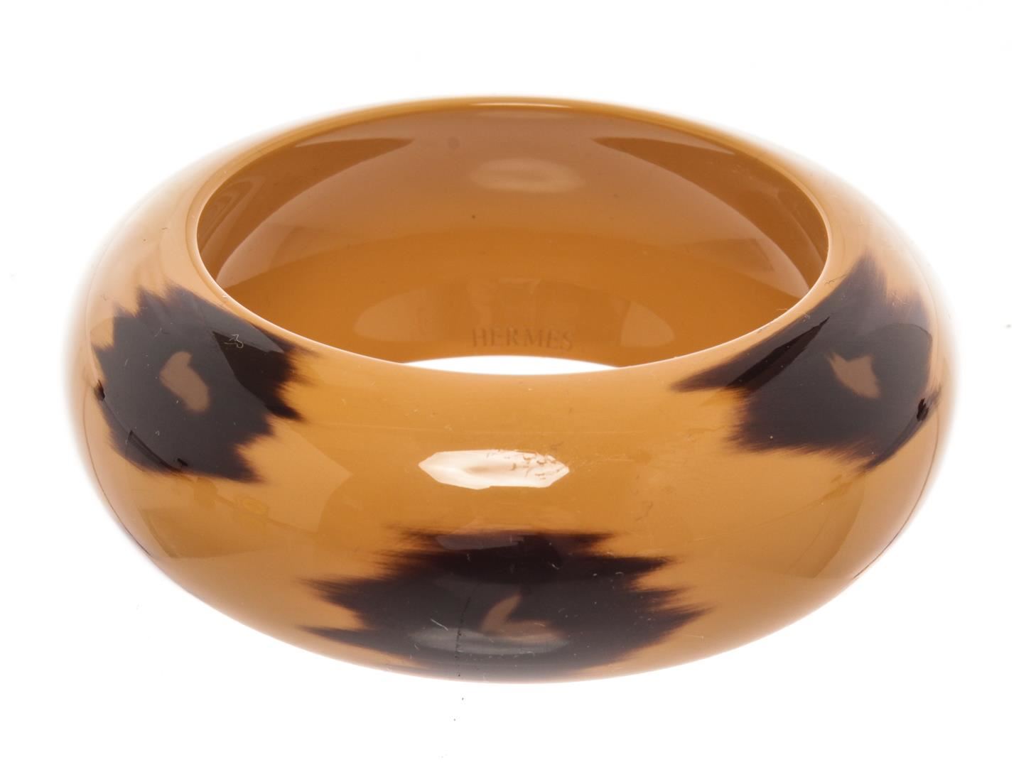 Hermes Light And Dark Brown Plastic Bangle. All available information is listed in the description and shown in the photos. Hermes Light And Dark Brown Plastic Bangle with elegant style, plastic material, round shape bangle.