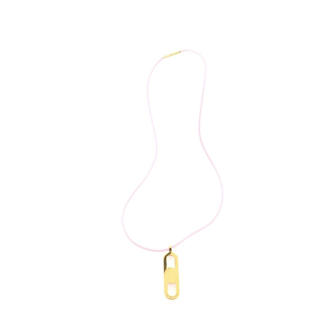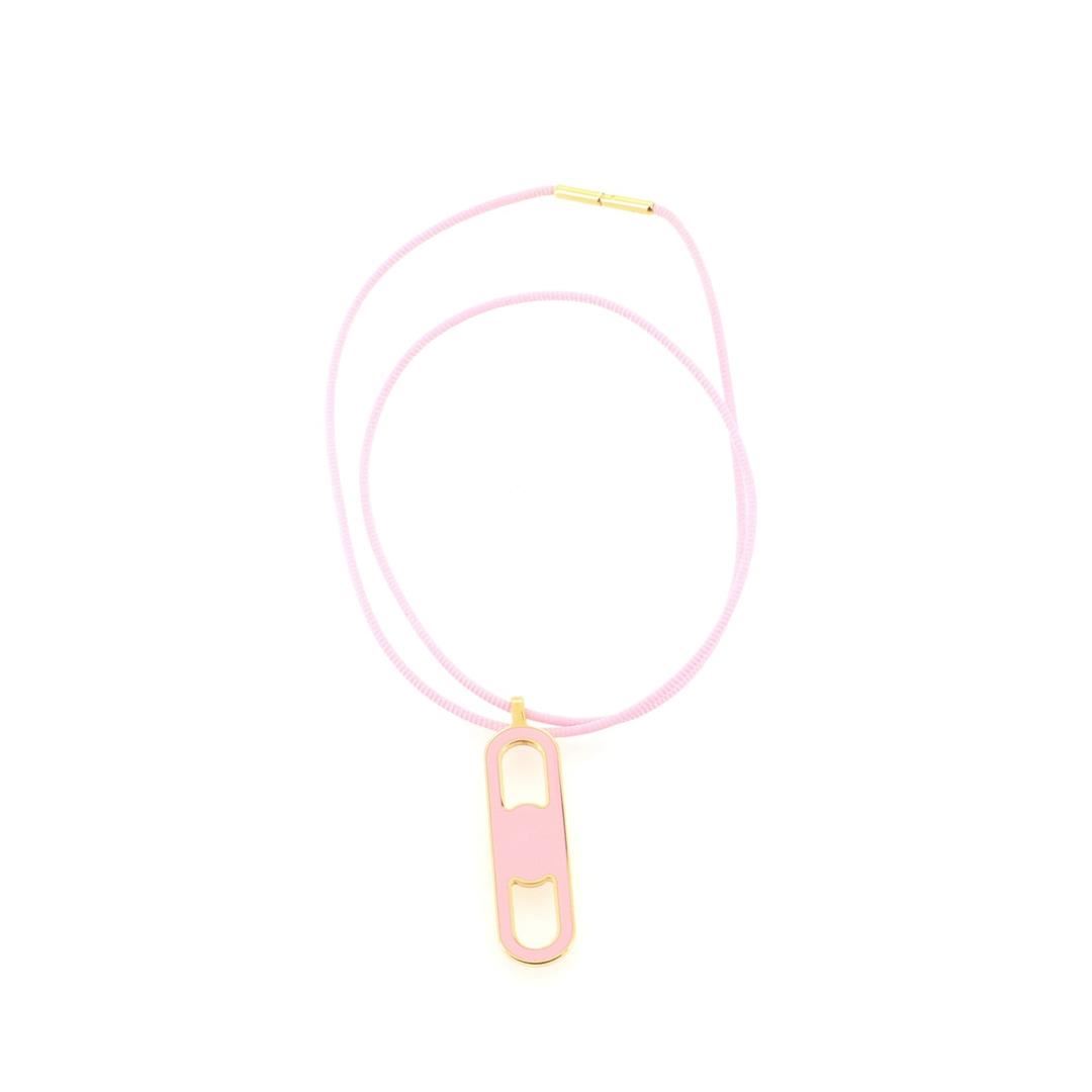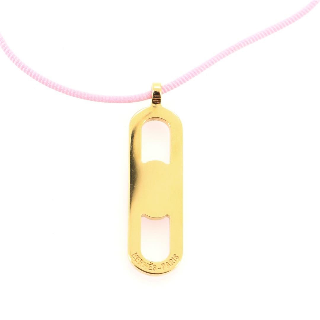 Hermes Maillon Pendant Choker Silk Cord with Metal and Enamel Pink Enamel Condition Details: Minor scratches on pendant and hardware. eight 9.5", Width 0.5", Depth ", Strap Drop None