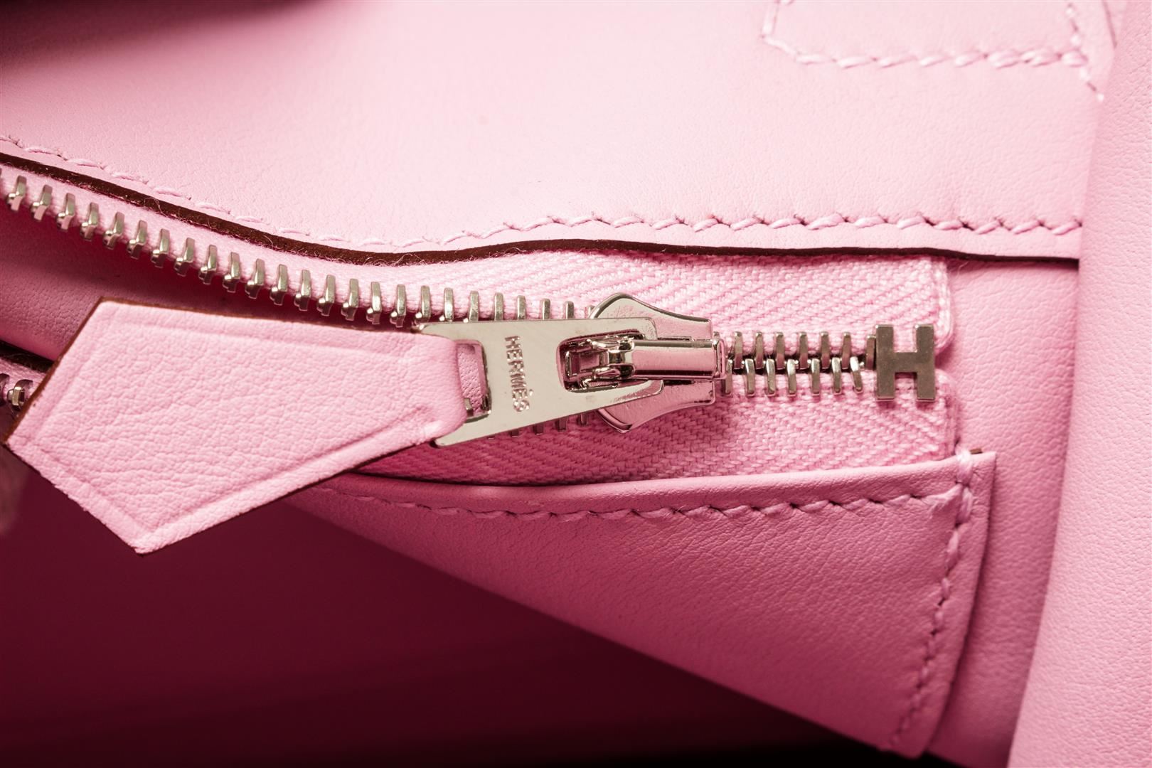 Hermes Mauve Chamonix Birkin 25. All available information is listed in the description and shown in the photos. Hermes Mauve Chamonix Birkin 25 with top handle, leather lining, interior pocket, palladium plated hardware, turn lock closure.