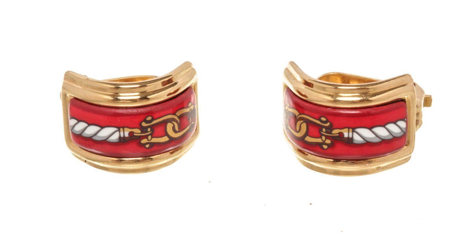 Hermes Multicolor Enamel Clip on Earring with gold-tone hardware.