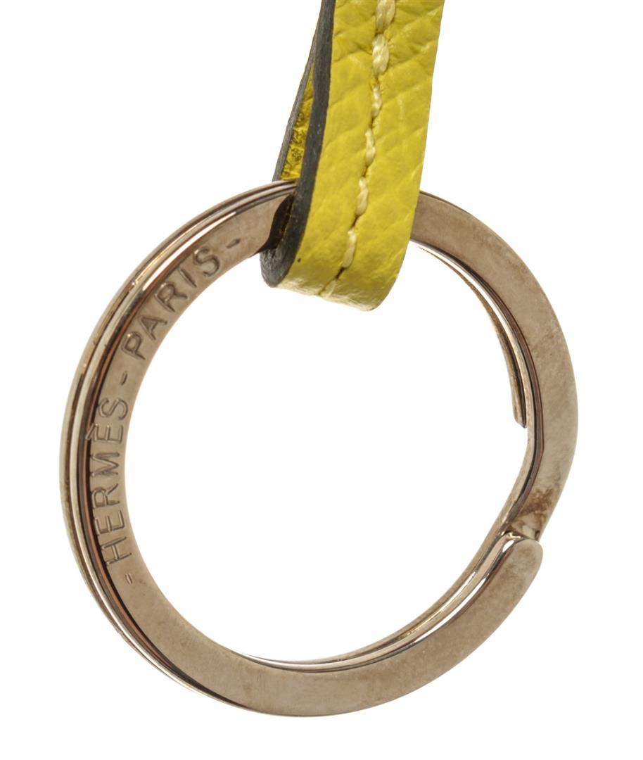 One Hermes Multicolor Leather Camail Bag Charm. Item is sold AS-IS. All available information is listed in the description and shown in the photo. Hermes multicolor leather Camail bag charm with pink, yellow, and green leather exterior with green stitching, yellow strap, silver-tone hardware, eyelet where the strap goes, keychain ring, and orange leather lining. SC