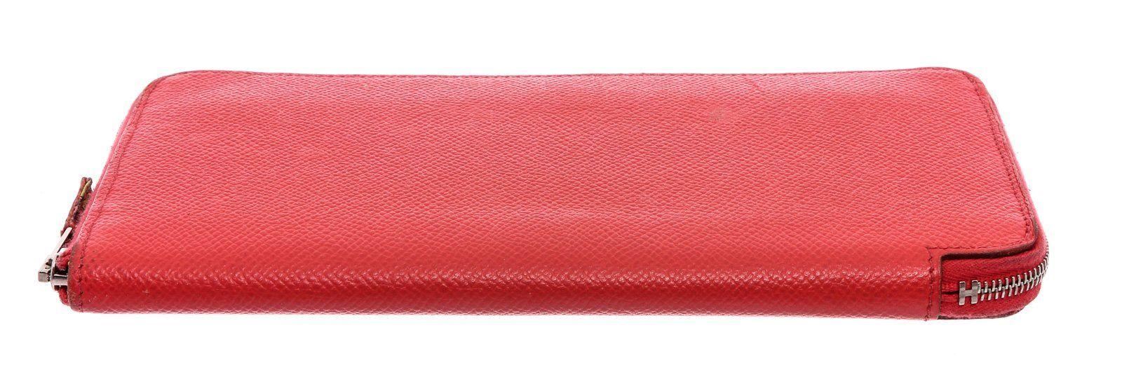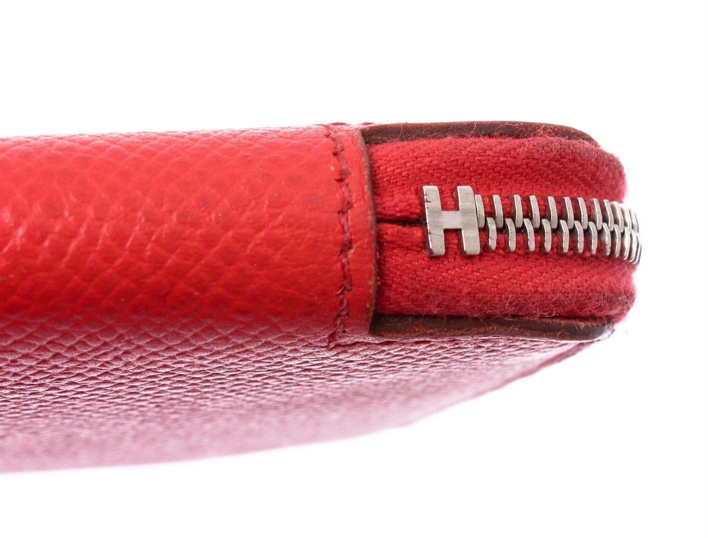 Orange Epsom leather Hermes Silk'In Classic wallet with palladium-plated hardware, multicolor Les Sangles motif silk lining, three interior compartments; one with zip closure, dual interior bill compartments, 12 card slots and zip-around closure. Measurements: Length: 8 in / 20 cm Width: 0.75 in / 2 cm 4.25 in / 11 cm Condition: Pre-Owned Good overall Condition. Please see photographs.