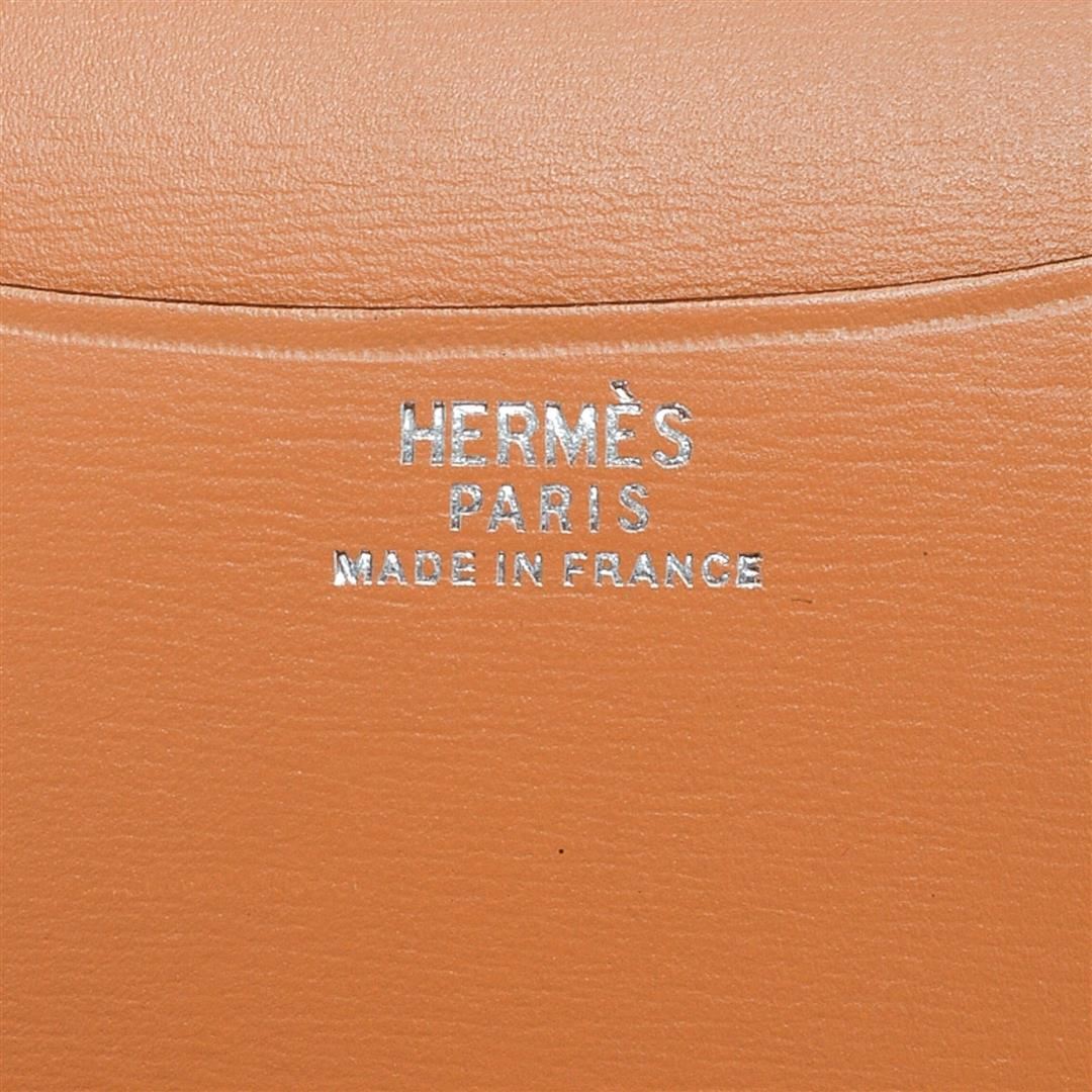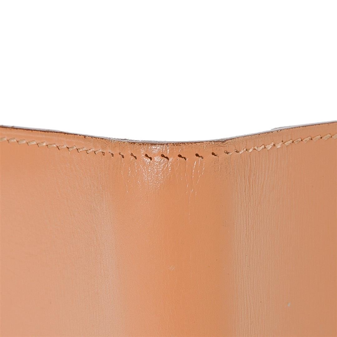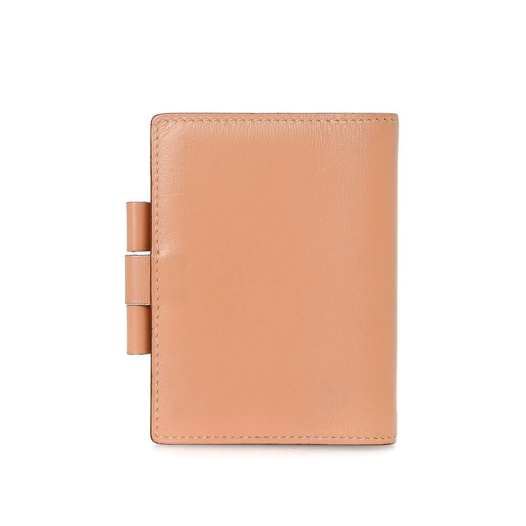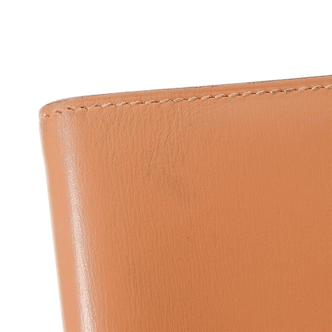 Hermes Peach Leather Mini Agenda Wallet with silver-tone hardware, leather trim, dual interior pockets, lD closure and brand stamp at interior edge.