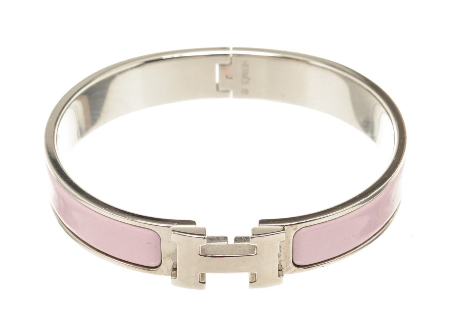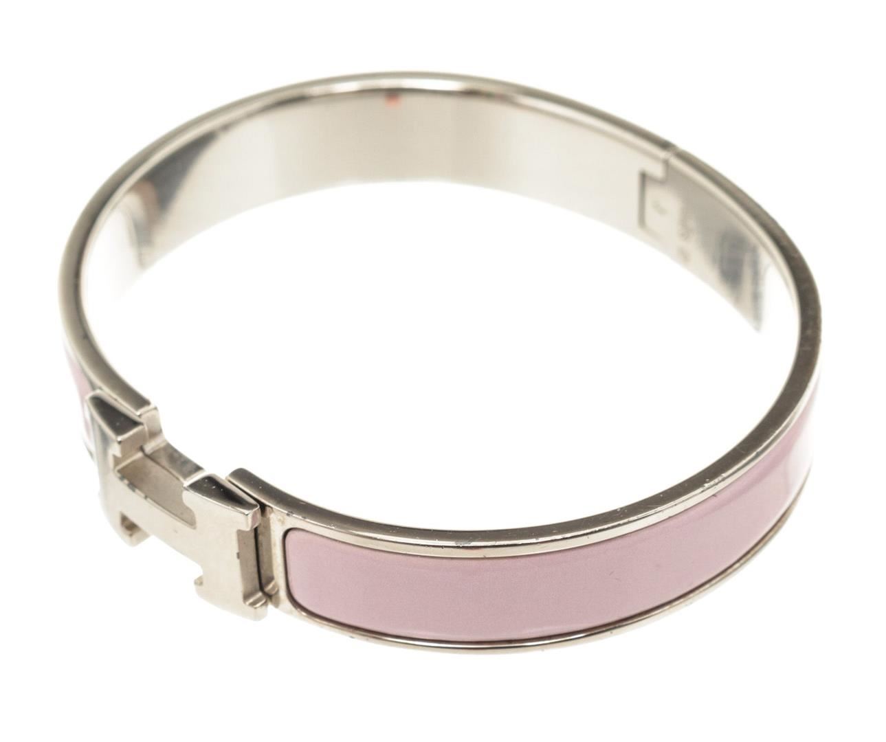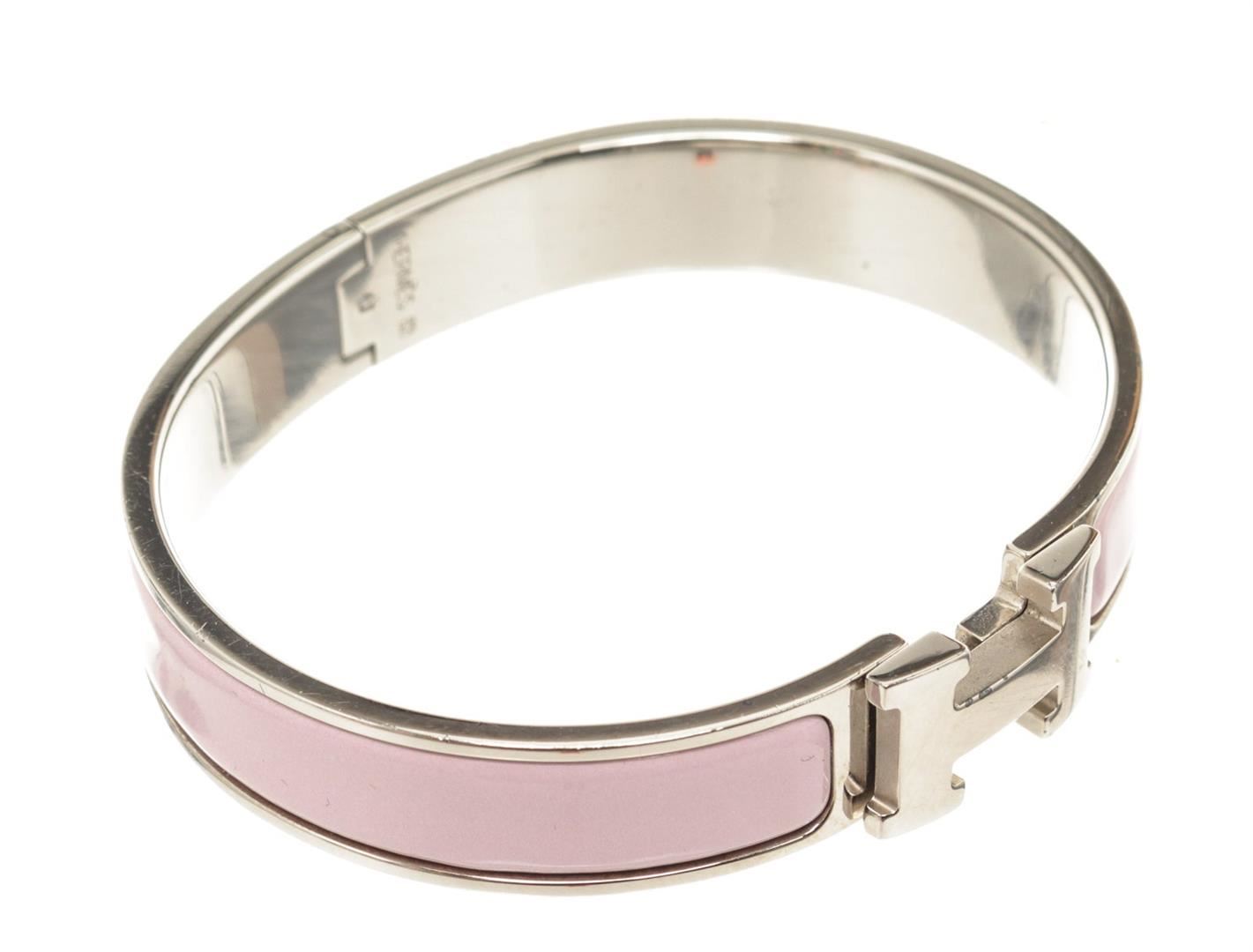 Hermes Pink Clic Clac Narrow Bracelet with H hinged clip closure.