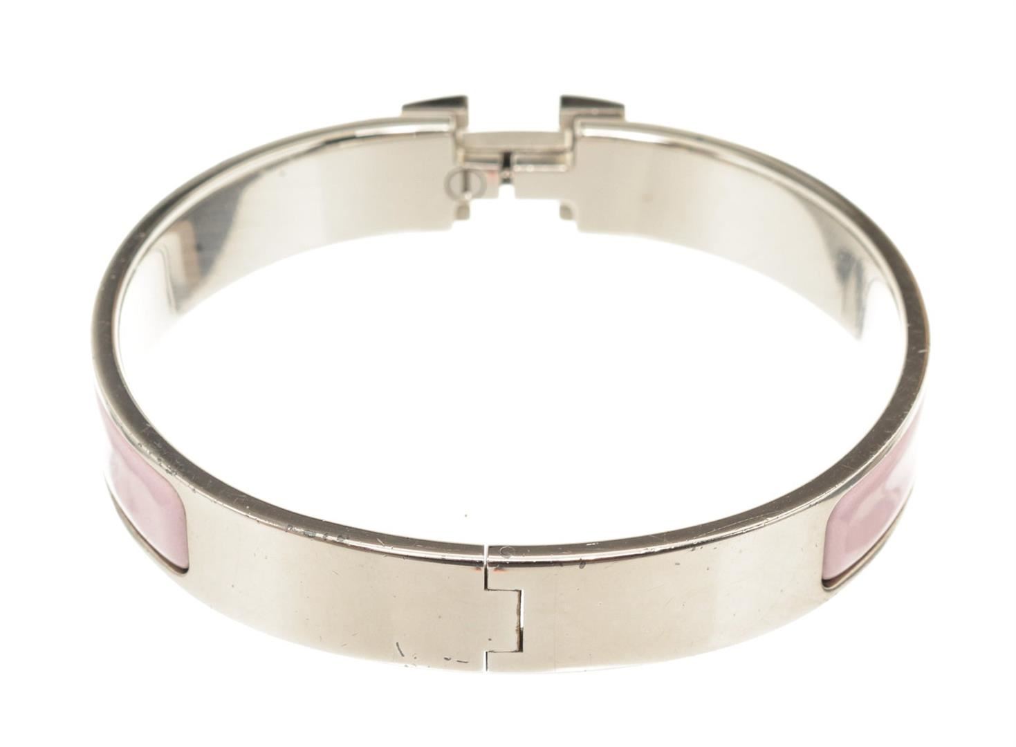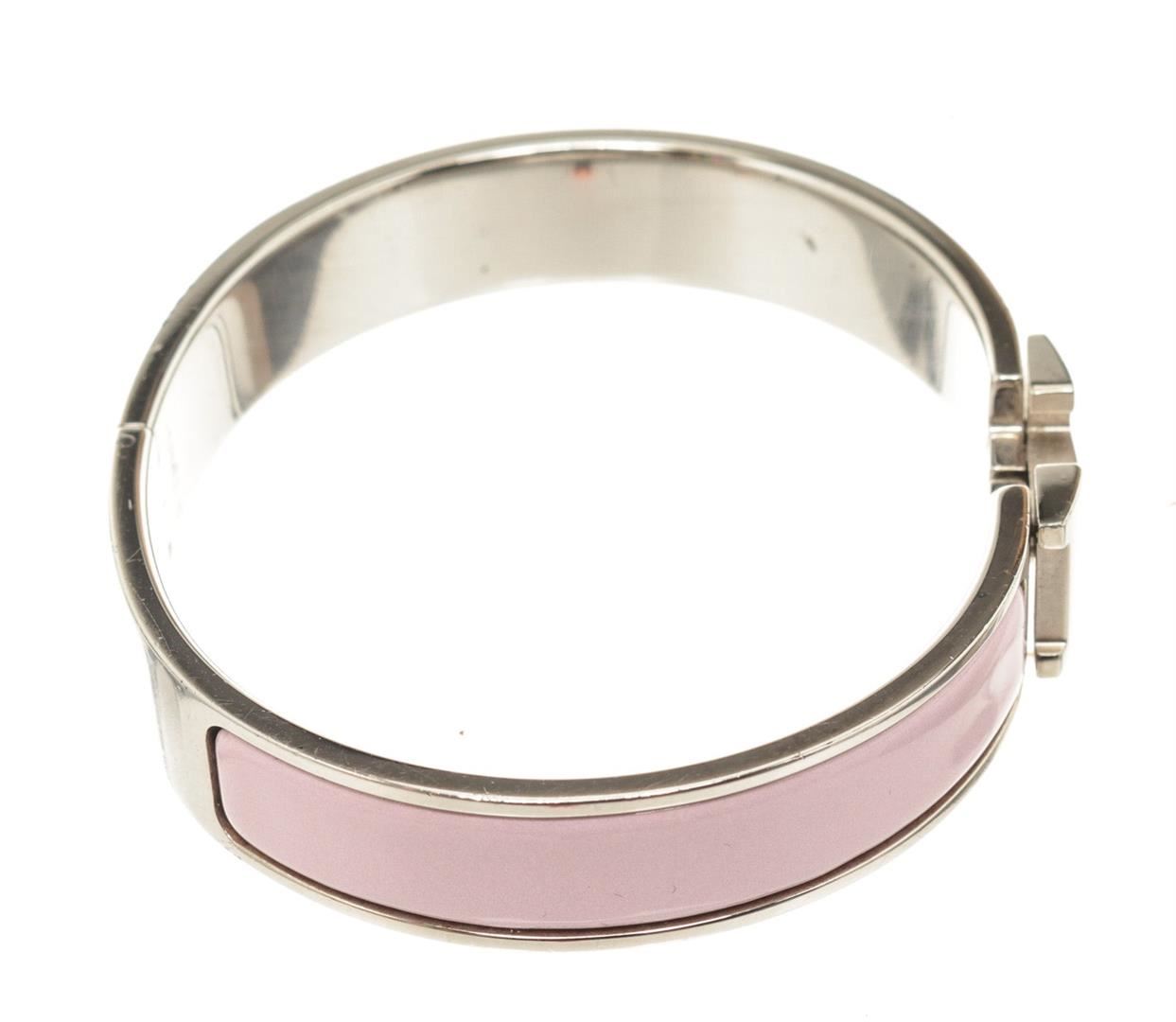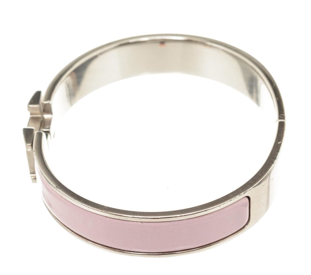 Hermes Pink Clic Clac Narrow Bracelet with H hinged clip closure.