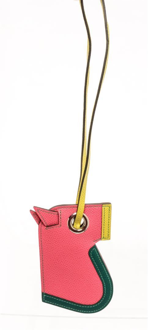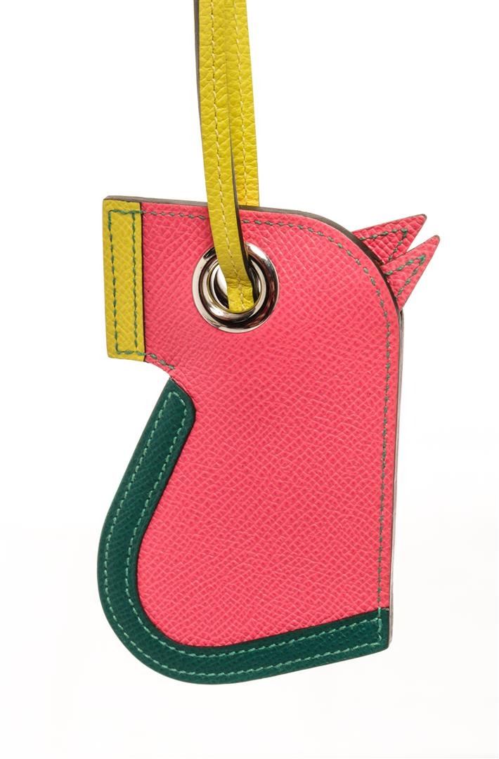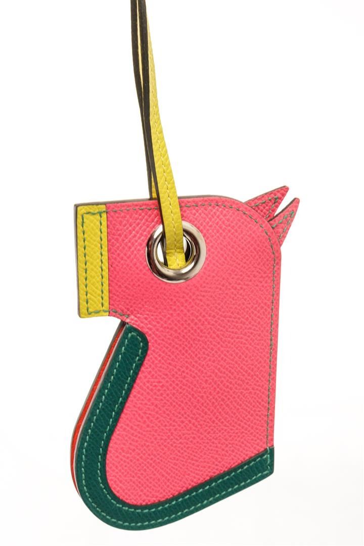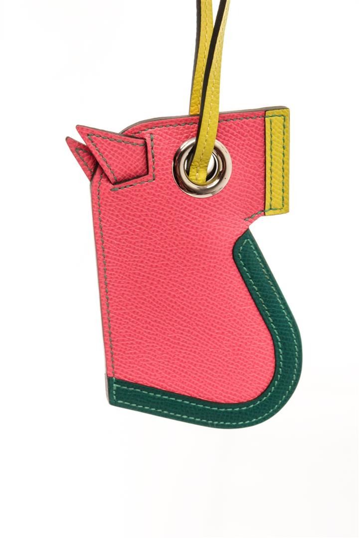 Hermes Pink Multicolor Leather Camail Bag Charm. All available information is listed in the description and shown in the photos. Hermes Pink Multicolor Leather Camail Bag Charm Height: 4.5 in (11.43 cm), Width: 3 in (7.62 cm)