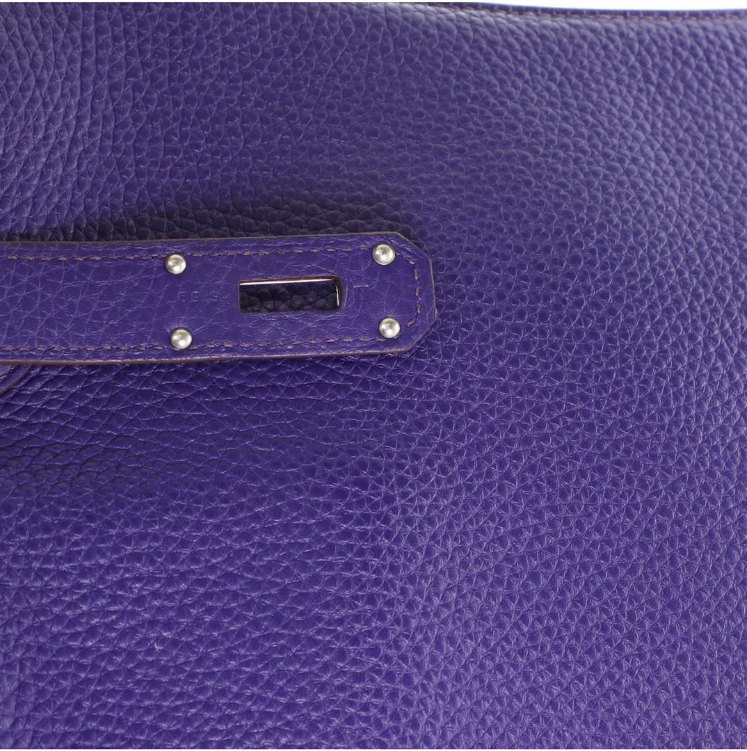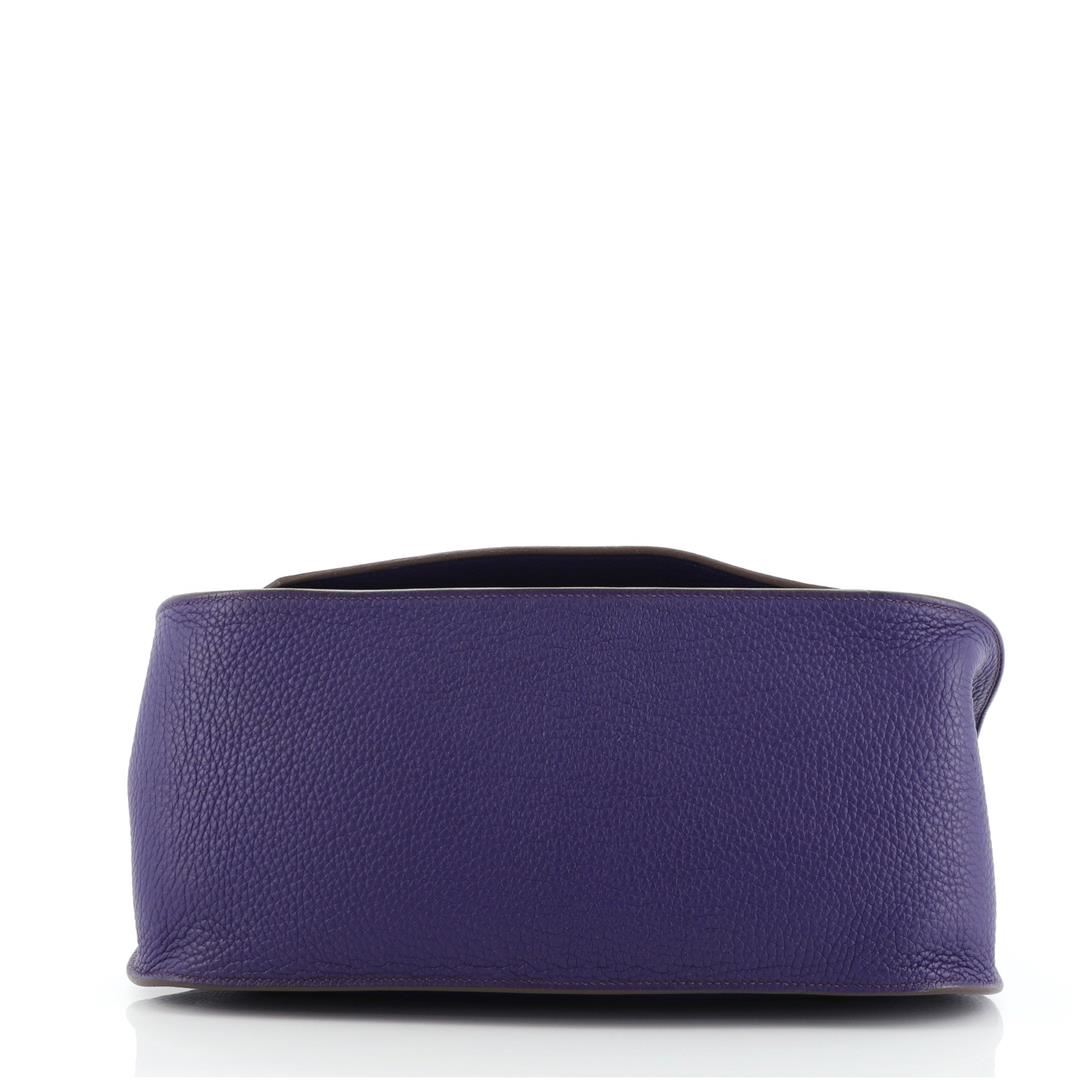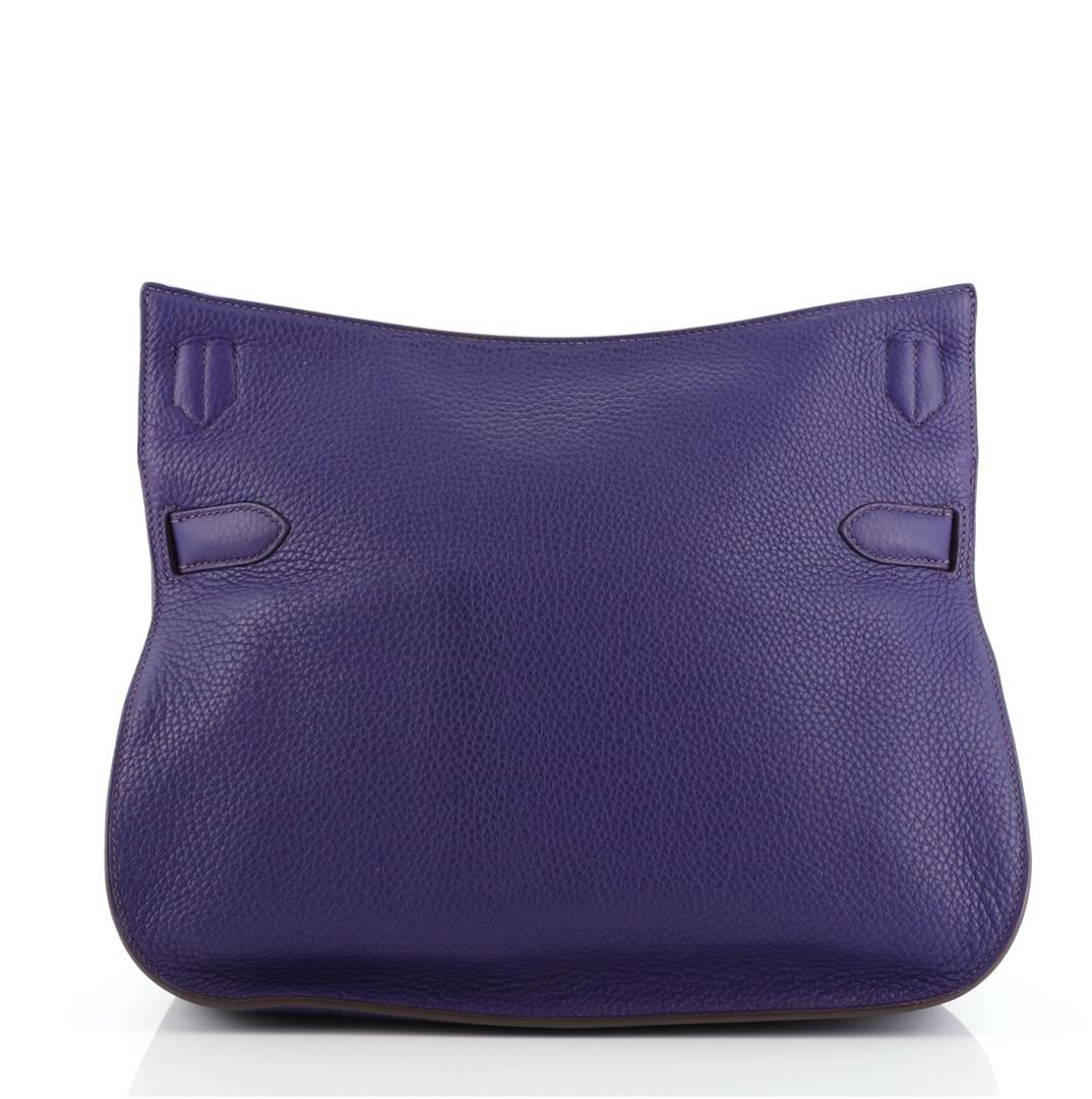 Hermes Purple Leather Jypsiere 31cm Satchel Bag with purple Clemence leather, palladium plated hardware, trim leather, interior zip pocket and turn lock closure.