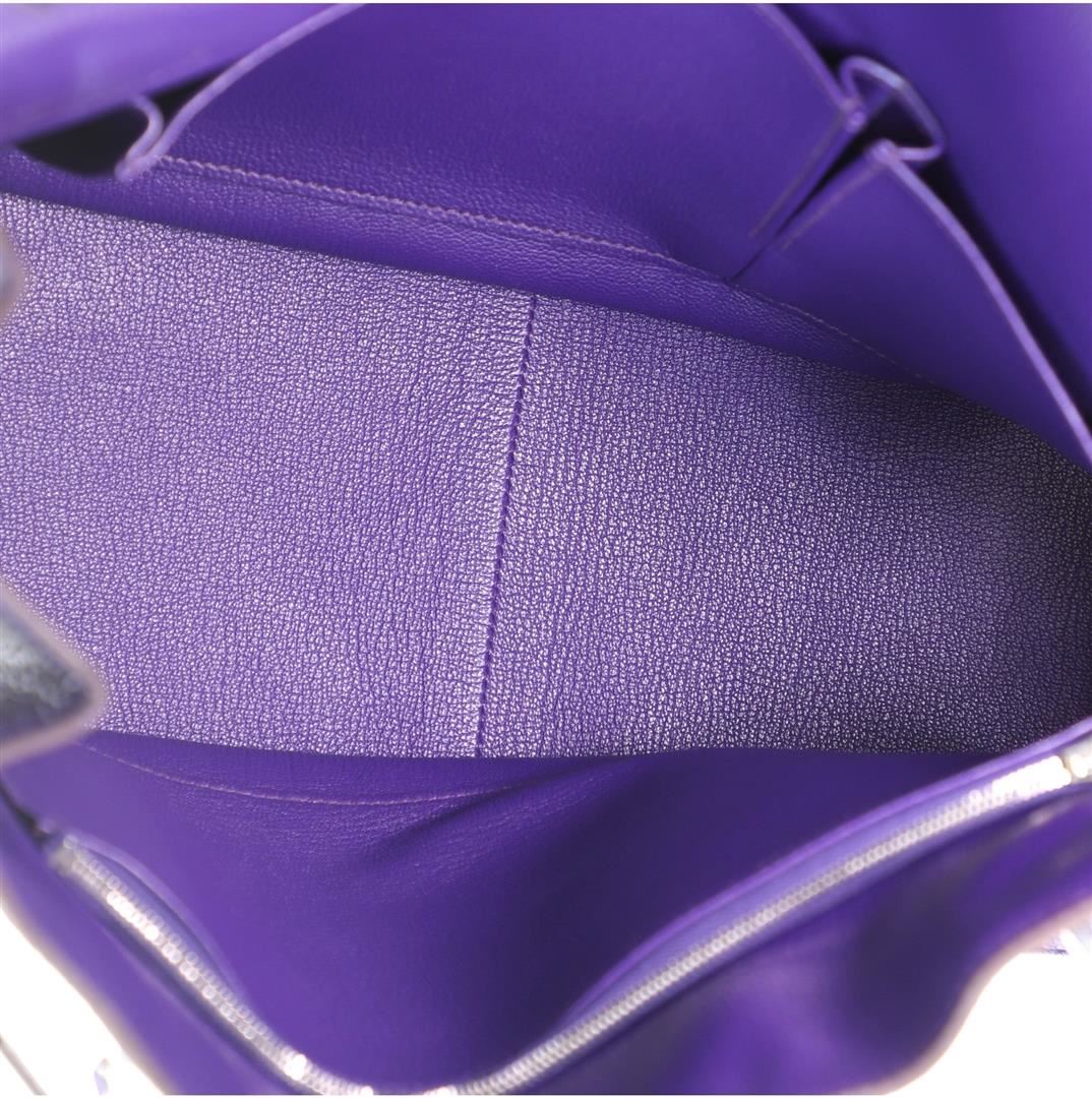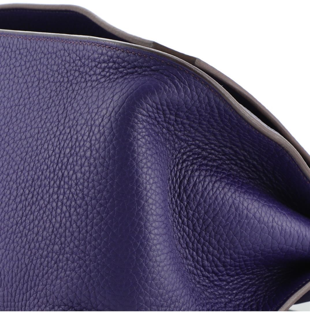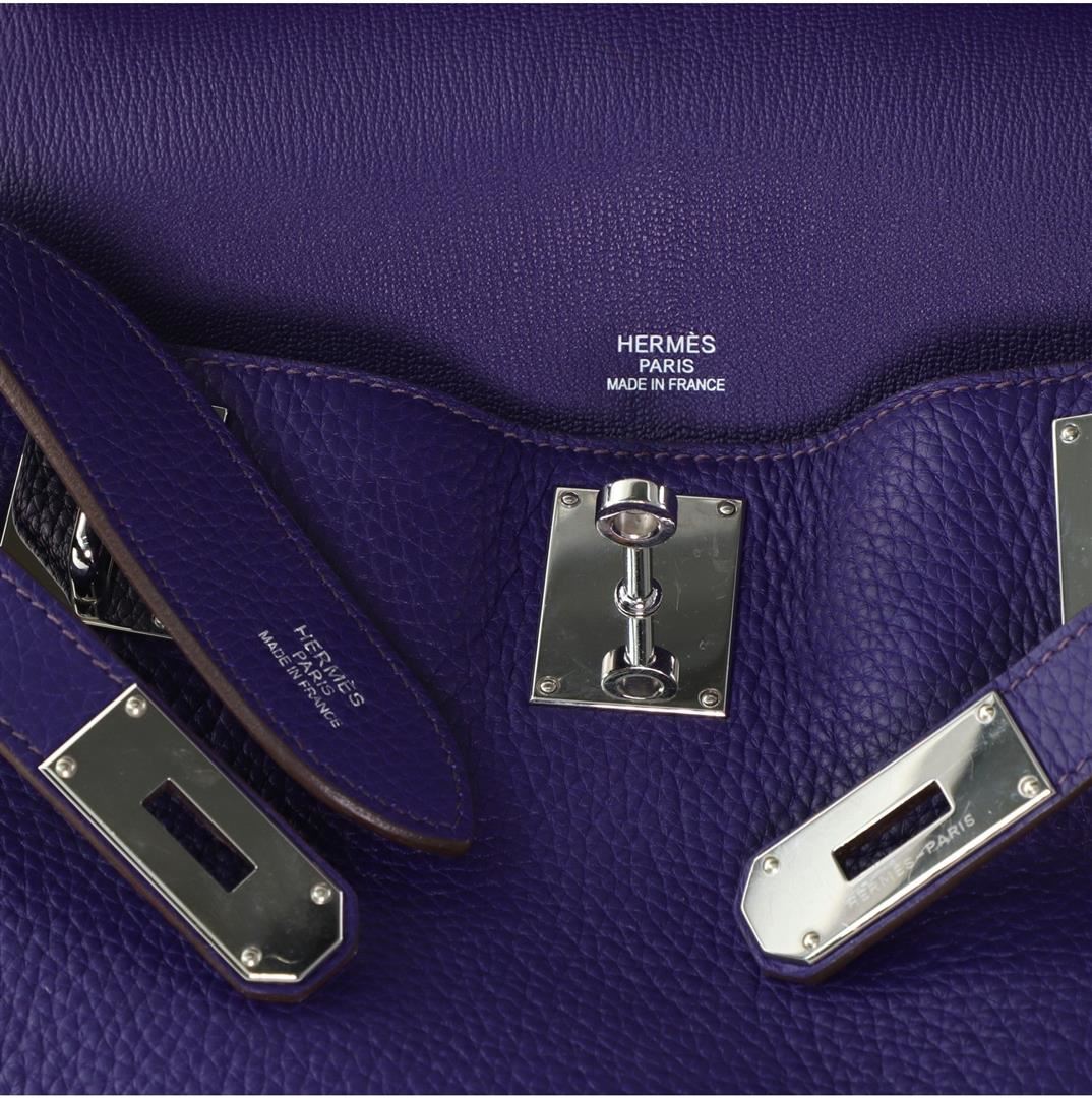 Hermes Purple Leather Jypsiere 31cm Satchel Bag with purple Clemence leather, palladium plated hardware, trim leather, interior zip pocket and turn lock closure.
