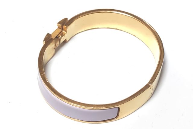 Purple metal Hermes Clic Clac bangle with gold-tone hardware and CC turn-lock closure.
