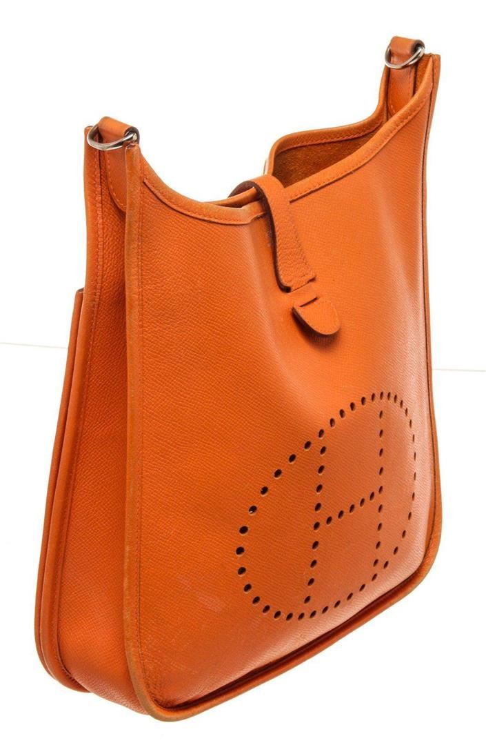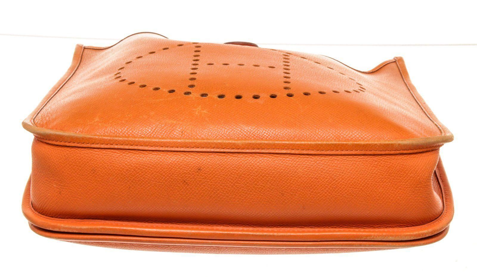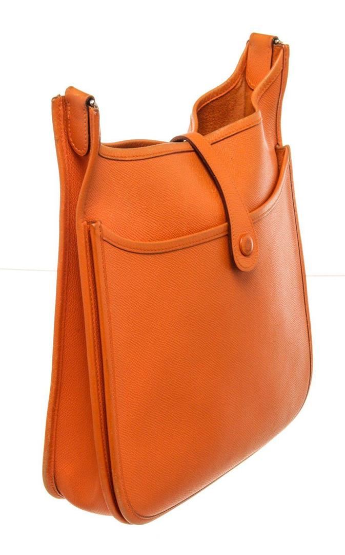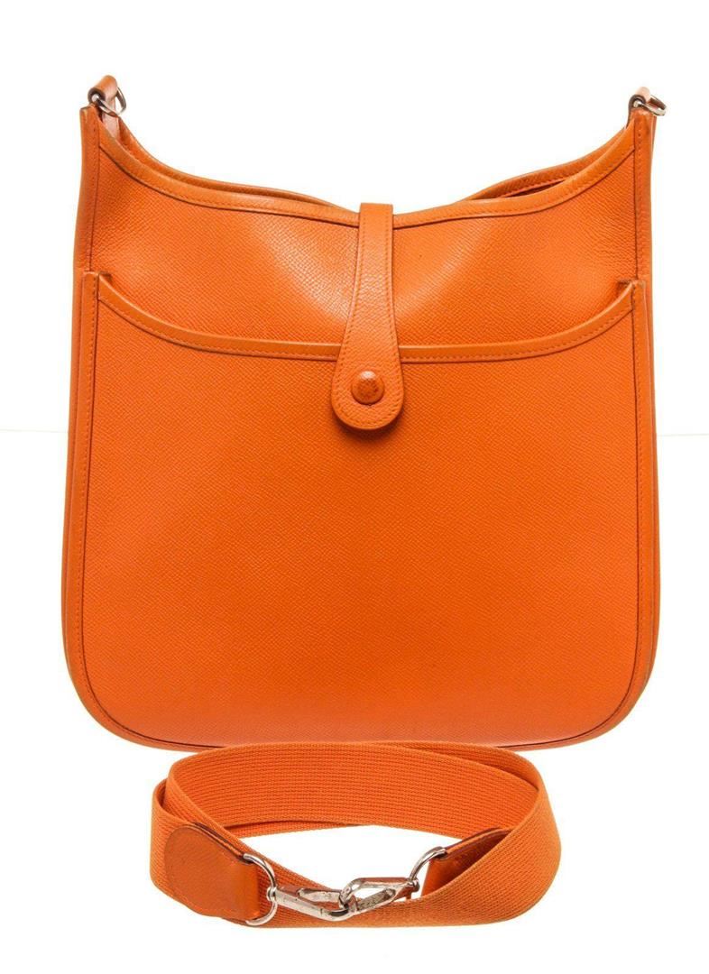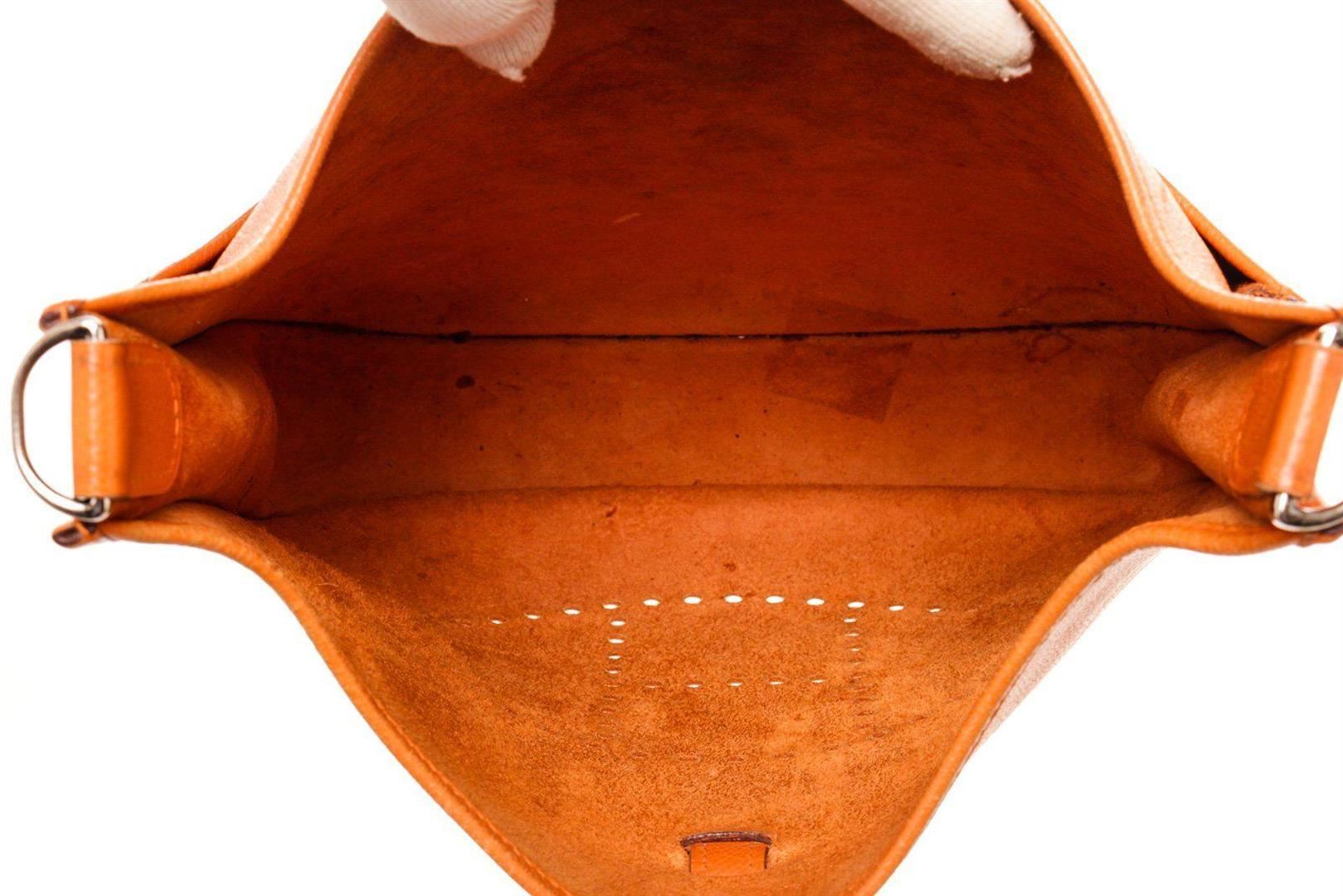 Hermes Red Leather Evelyne 2 GM Crossbody Bag with leather, gold-tone hardware, trim leather, interior slip pocket, suede lining, shoulder bag and snap closure.
