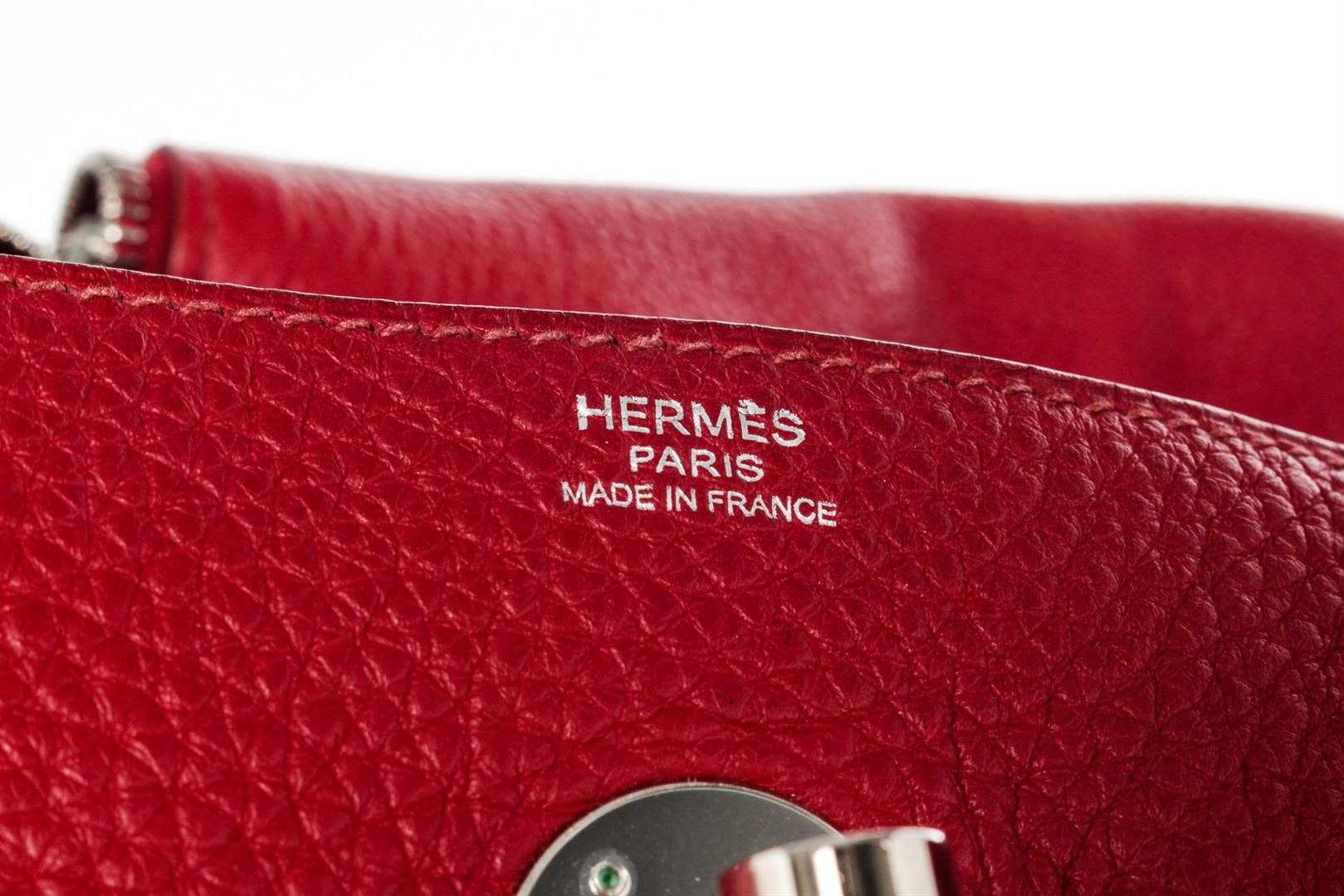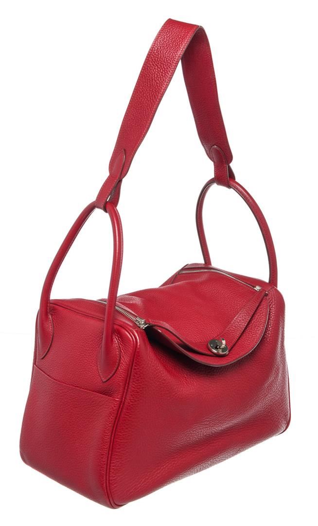 One Hermes Red Taurillon Clemence Leather Lindy 34 Shoulder Bag. Item is sold AS-IS. All available information is listed in the description and shown in the photo. Hermes Red Taurillon Clemence Leather Lindy 34 Shoulder Bag with leather, gold-tone hardware, trim leather, shoulder strap and zipper closure.