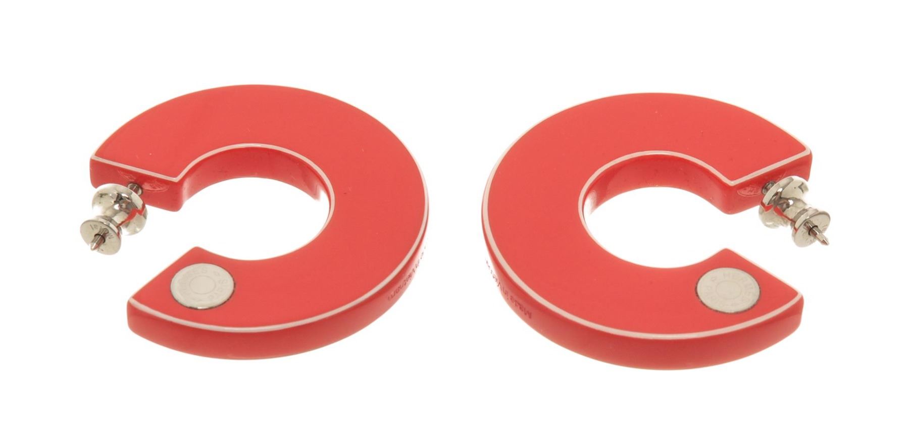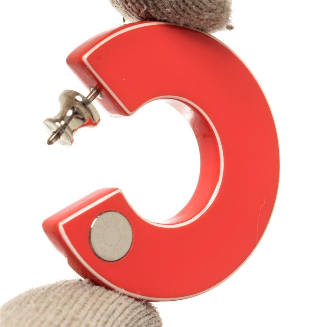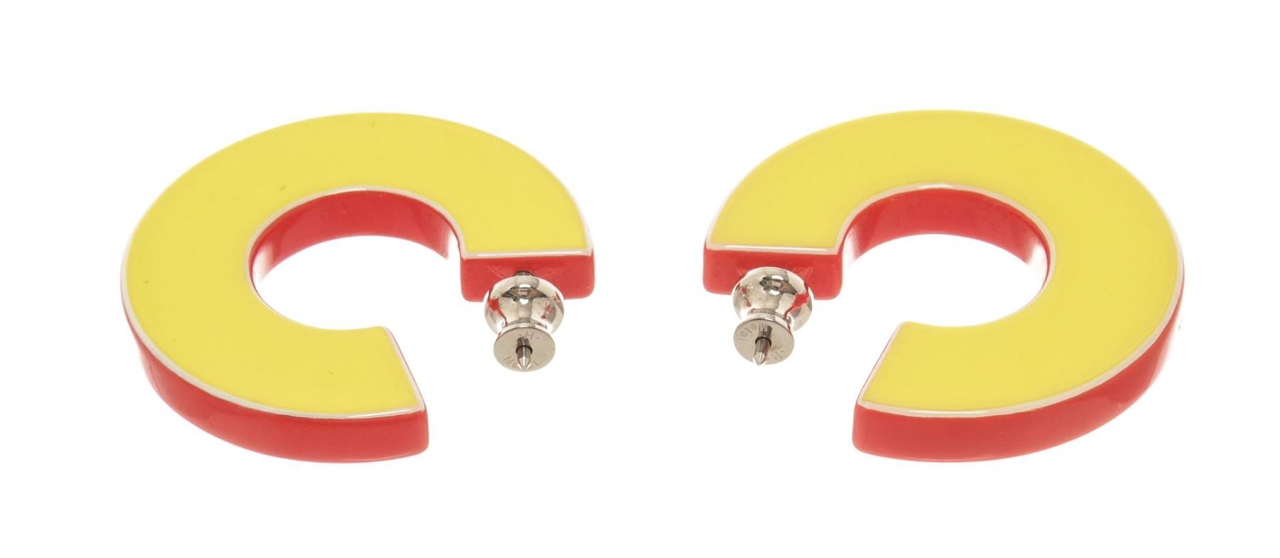 Hermes Selle Earrings Earrings Red/Yelowe/White Metal/Resin. Brand: Hermes, Style: Selle Earrings, Type: Earrings, Exterior Color: Red/Yelowe/White, Exterior Material: Metal/Resin, Closure: post and backing, Length: 1.4N/A" diameter.2N/A". Condition: Very Good. Additional Information: One side yellow, one side red on each earring. Item is sold AS-IS and all information pertaining to this lot is available in the photos or this description.