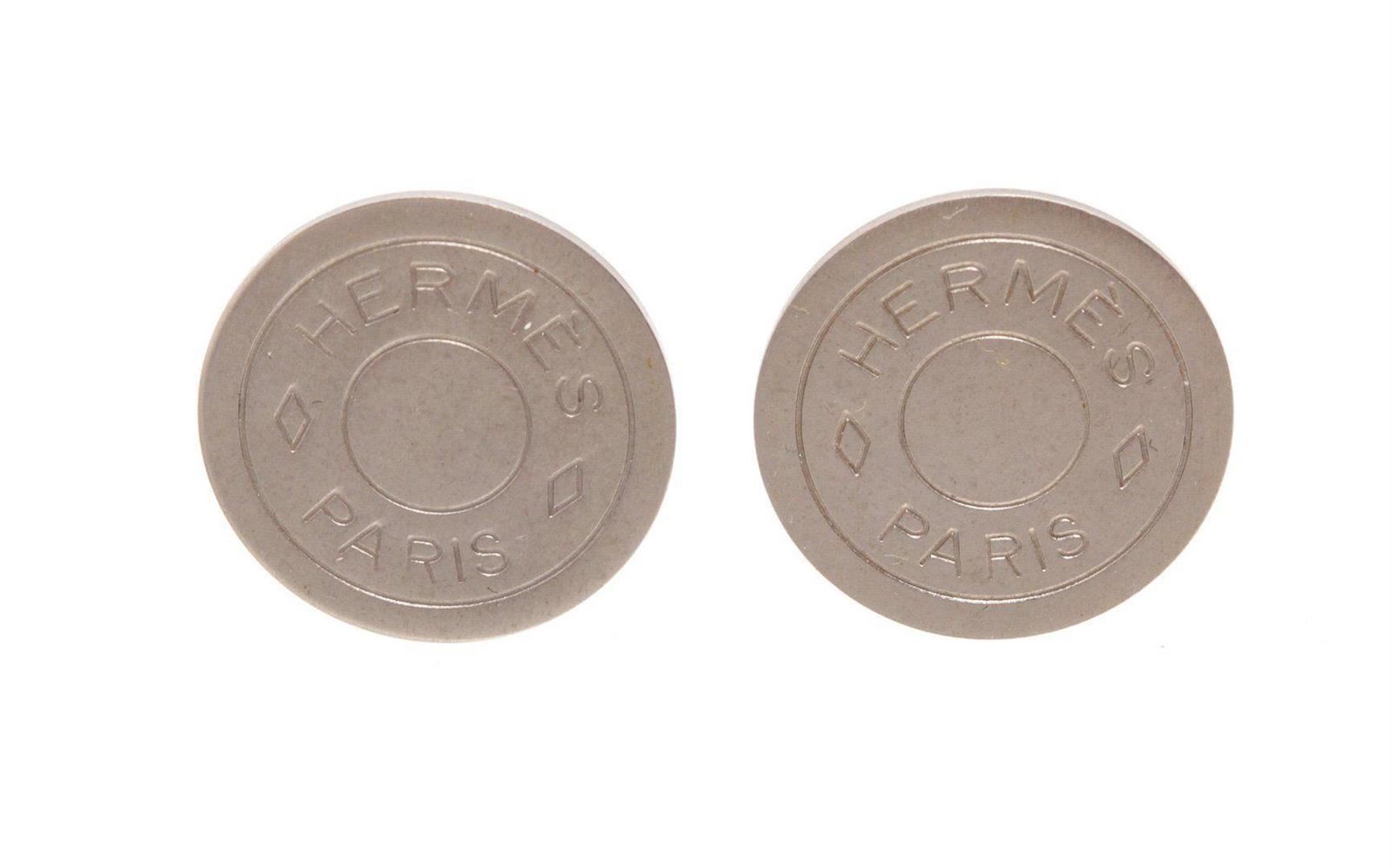 Hermes Silver Clou De Selle Clip-On Earrings with silver-tone hardware. Measurements: Length 1 in / 3 cm Width 1 in / 3 cm Height 1 in / 3 cm Condition: Pre-Owned Good overall, please see photographs for detail.