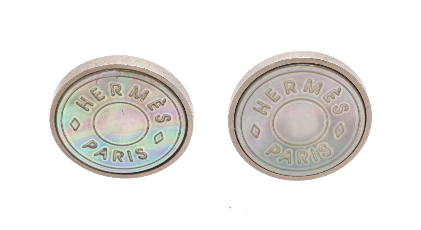 Hermes Silver Mother Of Pearl Earrings with silver-tone hardware. Condition: Pre-Owned Good overall, please see photographs for detail.