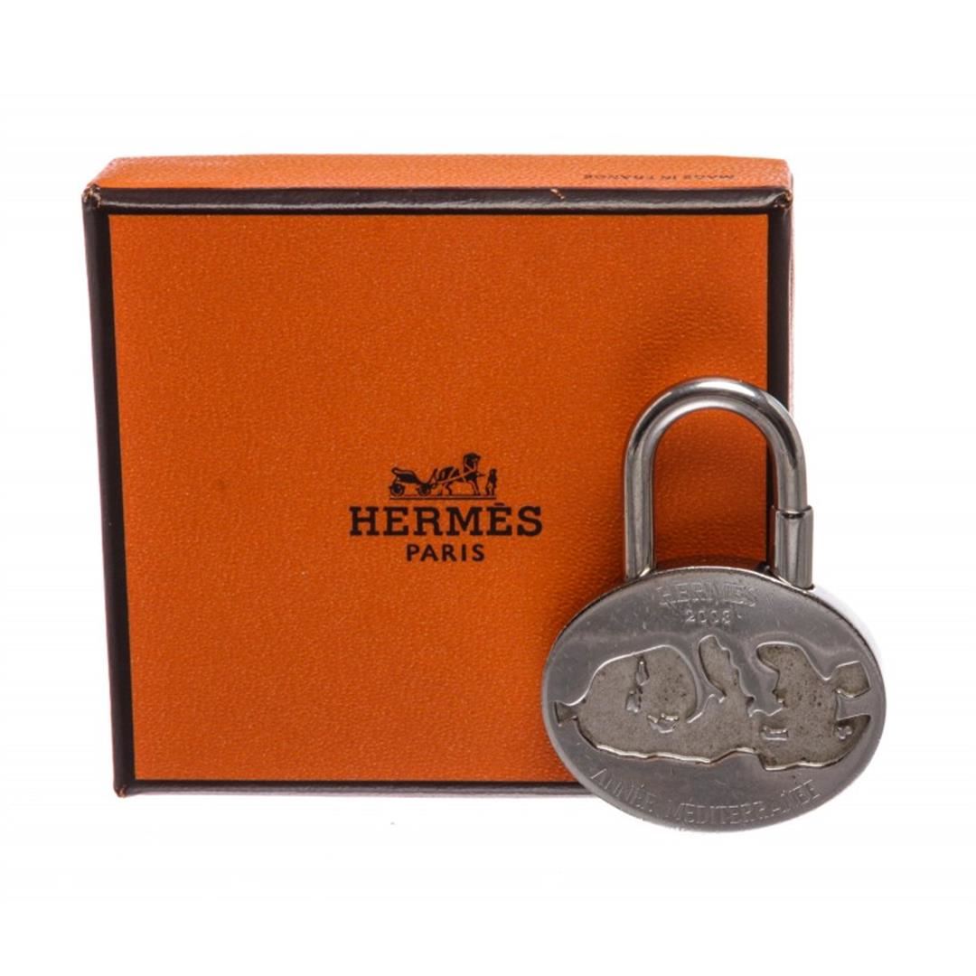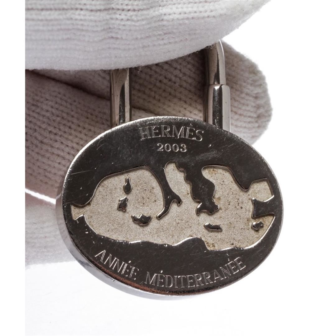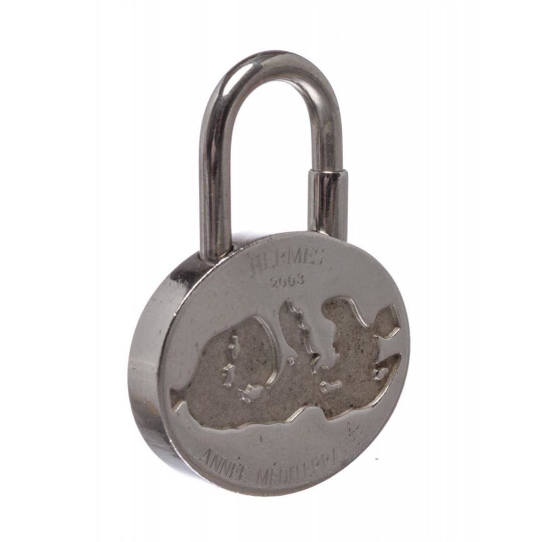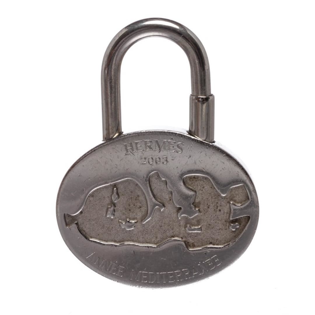 One Hermes Silver Palladium Année Méditerranée Lock Charm. Crafted out of silver palladium lock charm with screw closure.