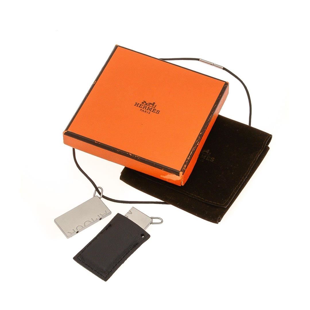 Hermes Silver Symbol Pendant Top Necklace with silver-tone hardware, High Polish. Measurements: Length: 0.5 in / 1 cm Width: 1 in / 3 cm 1 in / 3 cmGood overall, please see photographs for detail.
