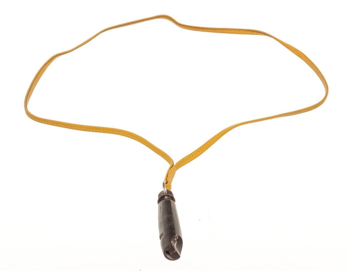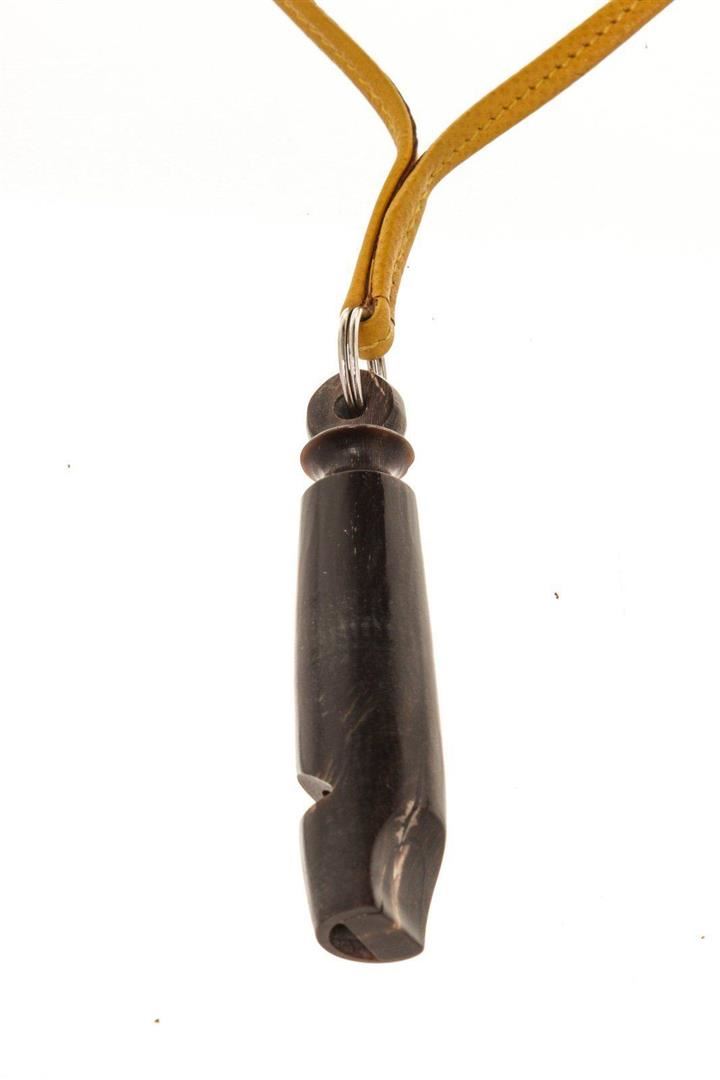 Hermes Yellow Brown Leather Whistle Necklace with material leather, gold-tone hardware.
