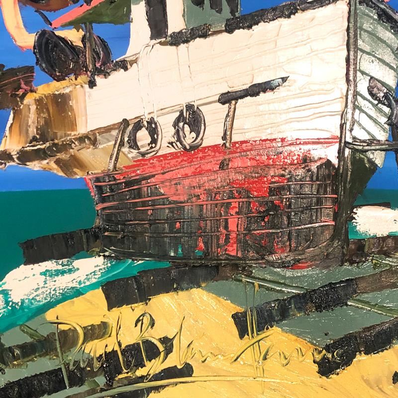 "High and Dry" is an original oil painting on stretched canvas by Paul Blaine Henrie (1932-1999). The piece is hand signed by the artist and comes with a letter of authenticity. Please note that due to the age of this piece and the way it was stored, there are minor sings of wear, particularly on the corners and edges. Measures approximately. 30" x 40" (image).