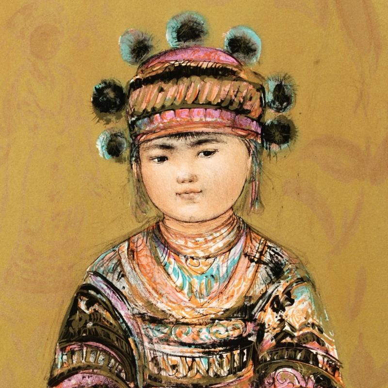 "Hill Tribe Youth" is a limited edition lithograph on paper, numbered and hand signed by Edna Hibel (1917-2014). Includes Certificate of Authenticity! Measures approx. 18" x 22" (with border), 12.5" x 17" (image).