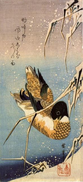 Artist: Utagawa Hiroshige - Title: Wild Duck - Medium: Fine Art Giclee on Canvas - Image Size: Approximately 20 inches x 9 inches - Unframed on Unstretched Canvas - Biography: (1797 - 12 October 1858) Hiroshige 's print s convey the beauty of Japan and provide insight into the everyday life of its citizens during the Edo period. The appeal of his tender, lyrical landscapes was not restricted to the Japanese audience.Hiroshige 's work had a profound influence on the Impressionists and Post-Impressionists of Europe: Toulouse-Lautrec was fascinated withHiroshige 's daring diagonal compositions and inventive use of perspective, while Van Gogh literally copied two ofHiroshig's prints from the famous series, 100 Famous Views of Edo in oil paint. - The borders may not be even inHiroshig's images. Please refer to the image.