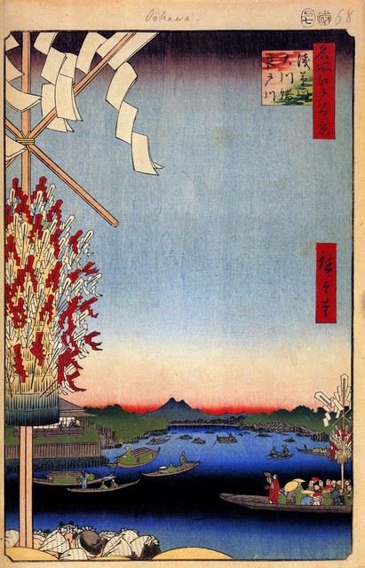 Artist: Utagawa Hiroshige - Title: Asakusa River - Medium: Fine Art Giclee on Canvas - Image Size: Approximately 32 inches x 20.5 inches - Unframed on Unstretched Canvas - Biography: (1797 - 12 October 1858)Hiroshige 's prints convey the beauty of Japan and provide insight into the everyday life of its citizens during the Edo period. The appeal of his tender, lyrical landscapes was not restricted to the Japanese audience.Hiroshige 's work had a profound influence on the Impressionists and Post-Impressionists of Europe: Toulouse-Lautrec was fascinated withHiroshige 's daring diagonal compositions and inventive use of perspective, while Van Gogh literally copied two ofHiroshig's prints from the famous series, 100 Famous Views of Edo in oil paint. - The borders may not be even inHiroshig's images. Please refer to the image.