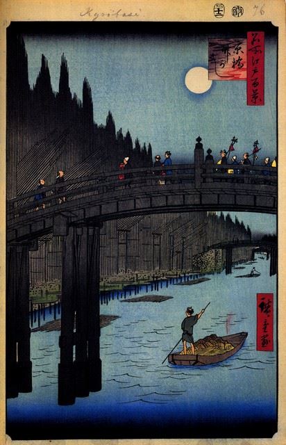 Artist: Utagawa Hiroshige - Title: Bamboo Yards - Medium: Fine Art Giclee on Canvas - Image Size: Approximately 32 inches x 20.5 inches - Unframed on Unstretched Canvas - Biography: (1797 - 12 October 1858) Hiroshige 's prints convey the beauty of Japan and provide insight into the everyday life of its citizens during the Edo period. The appeal of his tender, lyrical landscapes was not restricted to the Japanese audience.Hiroshige 's work had a profound influence on the Impressionists and Post-Impressionists of Europe: Toulouse-Lautrec was fascinated withHiroshige 's daring diagonal compositions and inventive use of perspective, while Van Gogh literally copied two ofHiroshig's prints from the famous series, 100 Famous Views of Edo in oil paint. - The borders may not be even inHiroshig's images. Please refer to the image.