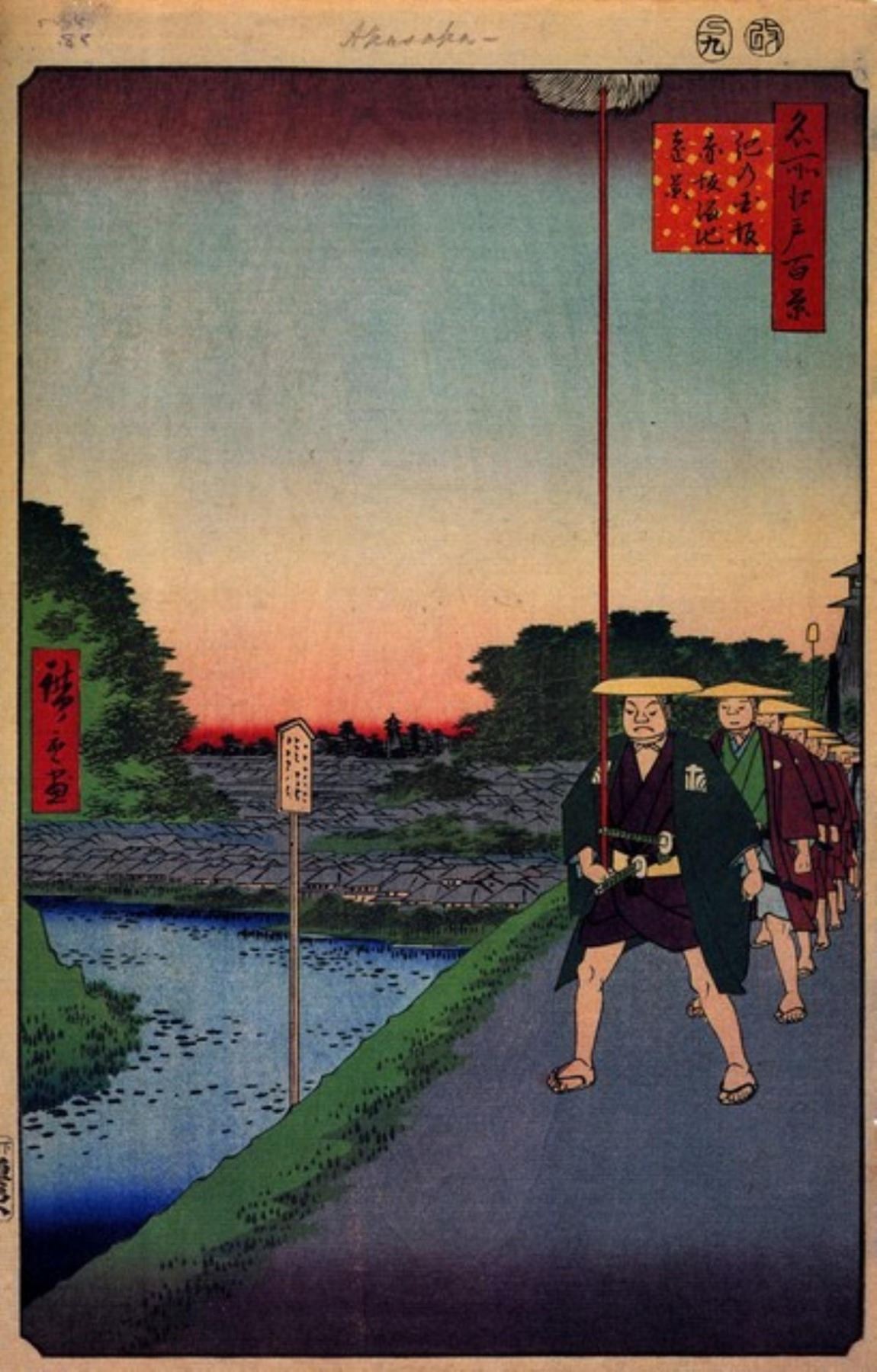 Artist: Utagawa Hiroshige - Title: Distant View of Akasaka Tameike - Medium: Fine Art Giclee on Canvas - Image Size: Approximately 20 inches x 12.75 inches - Unframed on Unstretched Canvas - Biography: (1797 - 12 October 1858) Hiroshige 's prints convey the beauty of Japan and provide insight into the everyday life of its citizens during the Edo period. The appeal of his tender, lyrical landscapes was not restricted to the Japanese audience.Hiroshige 's work had a profound influence on the Impressionists and Post-Impressionists of Europe: Toulouse-Lautrec was fascinated withHiroshige 's daring diagonal compositions and inventive use of perspective, while Van Gogh literally copied two ofHiroshig's prints from the famous series, 100 Famous Views of Edo in oil paint. - The borders may not be even inHiroshig's images. Please refer to the image.