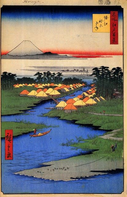 Artist: Utagawa Hiroshige - Title: Horie and Nekozane - Medium: Fine Art Giclee on Canvas - Image Size: Approximately 32 inches x 20.5 inches - Unframed on Unstretched Canvas - Biography: (1797 - 12 October 1858) Hiroshige 's prints convey the beauty of Japan and provide insight into the everyday life of its citizens during the Edo period. The appeal of his tender, lyrical landscapes was not restricted to the Japanese audience.Hiroshige 's work had a profound influence on the Impressionists and Post-Impressionists of Europe: Toulouse-Lautrec was fascinated withHiroshige 's daring diagonal compositions and inventive use of perspective, while Van Gogh literally copied two ofHiroshig's prints from the famous series, 100 Famous Views of Edo in oil paint. - The borders may not be even inHiroshig's images. Please refer to the image.