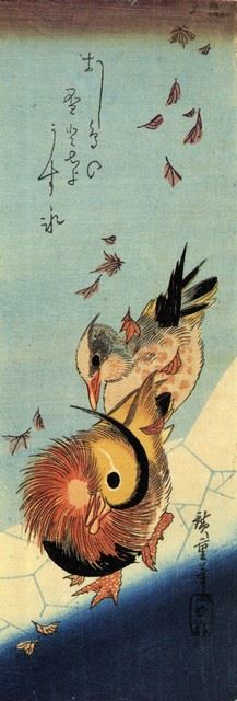 Artist: Utagawa Hiroshige - Title: Mandarin Duck on a Frozen Pond - Medium: Fine Art Giclee on Canvas - Image Size: Approximately 32 inches x 10.75 inches - Unframed on Unstretched Canvas - Biography: (1797 - 12 October 1858) Hiroshige 's print s convey the beauty of Japan and provide insight into the everyday life of its citizens during the Edo period. The appeal of his tender, lyrical landscapes was not restricted to the Japanese audience.Hiroshige 's work had a profound influence on the Impressionists and Post-Impressionists of Europe: Toulouse-Lautrec was fascinated withHiroshige 's daring diagonal compositions and inventive use of perspective, while Van Gogh literally copied two ofHiroshig's prints from the famous series, 100 Famous Views of Edo in oil paint. - The borders may not be even inHiroshig's images. Please refer to the image.