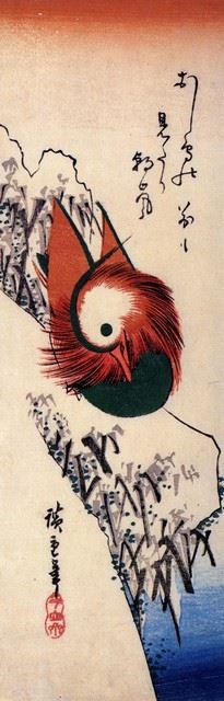 Artist: Utagawa Hiroshige - Title: Mandarin Duck - Medium: Fine Art Giclee on Canvas - Image Size: Approximately 32 inches x 10.25 inches - Unframed on Unstretched Canvas - Biography: (1797 - 12 October 1858) Hiroshige 's print s convey the beauty of Japan and provide insight into the everyday life of its citizens during the Edo period. The appeal of his tender, lyrical landscapes was not restricted to the Japanese audience.Hiroshige 's work had a profound influence on the Impressionists and Post-Impressionists of Europe: Toulouse-Lautrec was fascinated withHiroshige 's daring diagonal compositions and inventive use of perspective, while Van Gogh literally copied two ofHiroshig's prints from the famous series, 100 Famous Views of Edo in oil paint. - The borders may not be even inHiroshig's images. Please refer to the image.