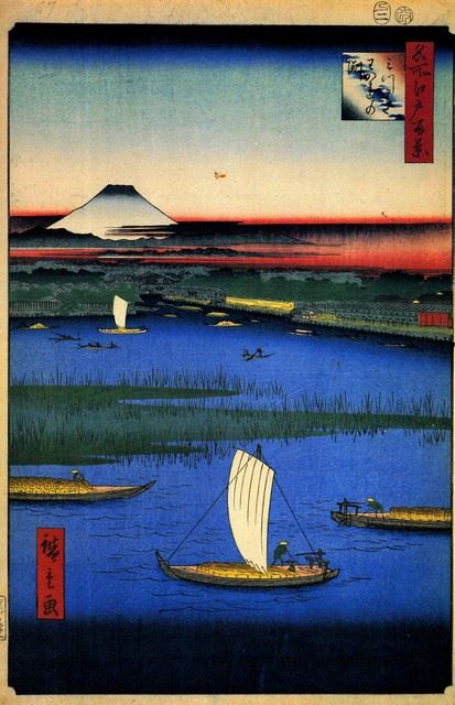 Artist: Utagawa Hiroshige - Title: Mitsumata - Medium: Fine Art Giclee on Canvas - Image Size: Approximately 20 inches x 12.75 inches - Unframed on Unstretched Canvas - Biography: (1797 - 12 October 1858) Hiroshige 's prints convey the beauty of Japan and provide insight into the everyday life of its citizens during the Edo period. The appeal of his tender, lyrical landscapes was not restricted to the Japanese audience.Hiroshige 's work had a profound influence on the Impressionists and Post-Impressionists of Europe: Toulouse-Lautrec was fascinated withHiroshige 's daring diagonal compositions and inventive use of perspective, while Van Gogh literally copied two ofHiroshig's prints from the famous series, 100 Famous Views of Edo in oil paint. - The borders may not be even inHiroshig's images. Please refer to the image.