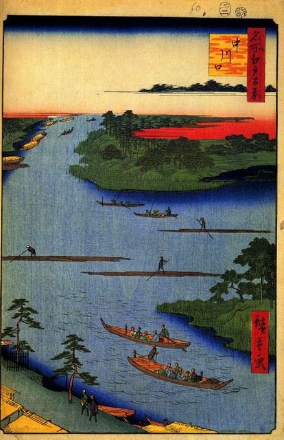 Artist: Utagawa Hiroshige - Title: Nakagawa River Mouth - Medium: Fine Art Giclee on Canvas - Image Size: Approximately 20 inches x 13 inches - Unframed on Unstretched Canvas - Biography: (1797 - 12 October 1858) Hiroshige 's prints convey the beauty of Japan and provide insight into the everyday life of its citizens during the Edo period. The appeal of his tender, lyrical landscapes was not restricted to the Japanese audience.Hiroshige 's work had a profound influence on the Impressionists and Post-Impressionists of Europe: Toulouse-Lautrec was fascinated withHiroshige 's daring diagonal compositions and inventive use of perspective, while Van Gogh literally copied two ofHiroshig's prints from the famous series, 100 Famous Views of Edo in oil paint. - The borders may not be even inHiroshig's images. Please refer to the image.