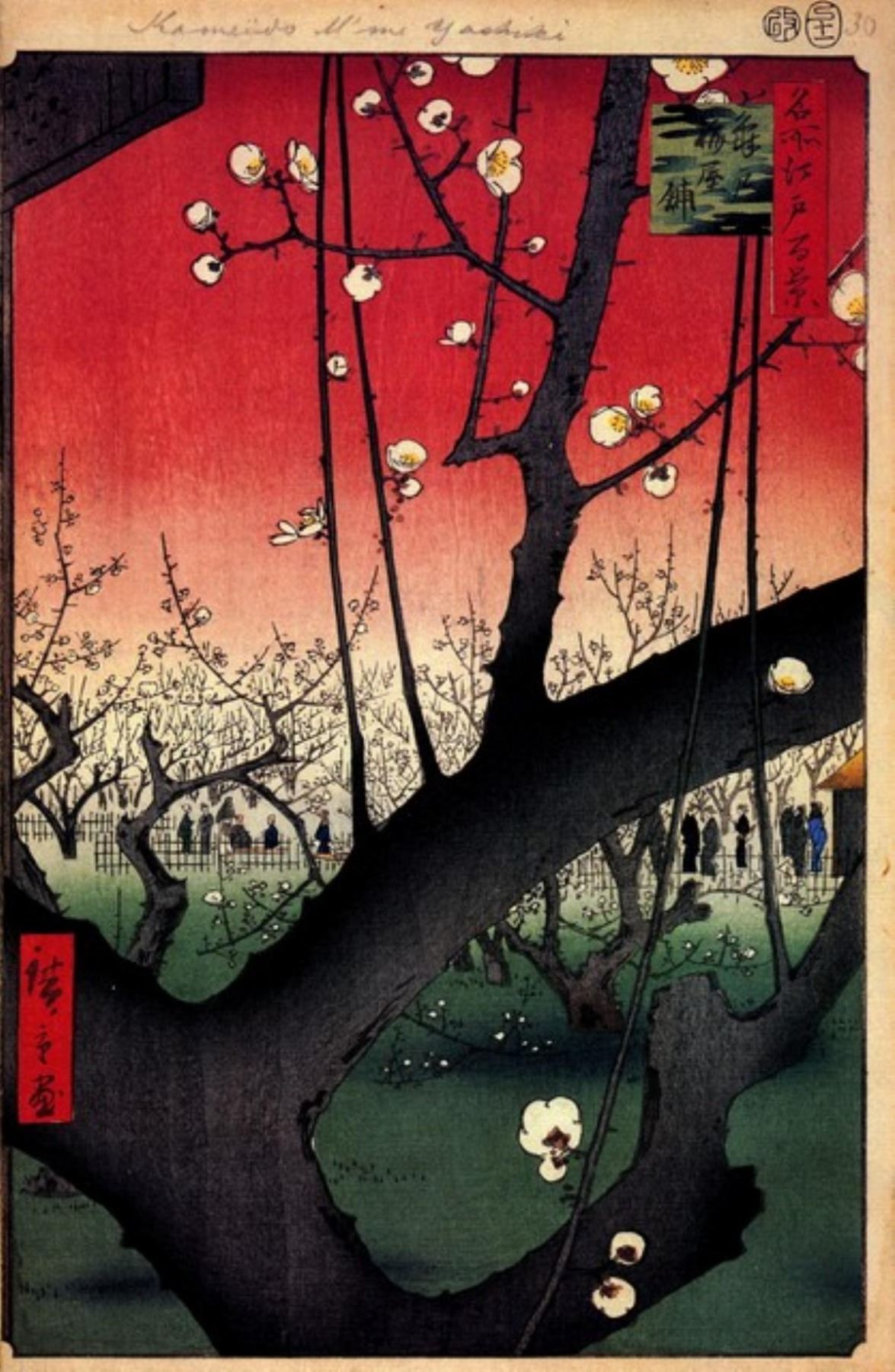 Artist: Utagawa Hiroshige - Title: Plum Estates, Kameido - Medium: Fine Art Giclee on Canvas - Image Size: Approximately 20 inches x 13 inches - Unframed on Unstretched Canvas - Biography: (1797 - 12 October 1858) Hiroshige 's prints convey the beauty of Japan and provide insight into the everyday life of its citizens during the Edo period. The appeal of his tender, lyrical landscapes was not restricted to the Japanese audience.Hiroshige 's work had a profound influence on the Impressionists and Post-Impressionists of Europe: Toulouse-Lautrec was fascinated withHiroshige 's daring diagonal compositions and inventive use of perspective, while Van Gogh literally copied two ofHiroshig's prints from the famous series, 100 Famous Views of Edo in oil paint. - The borders may not be even inHiroshig's images. Please refer to the image.